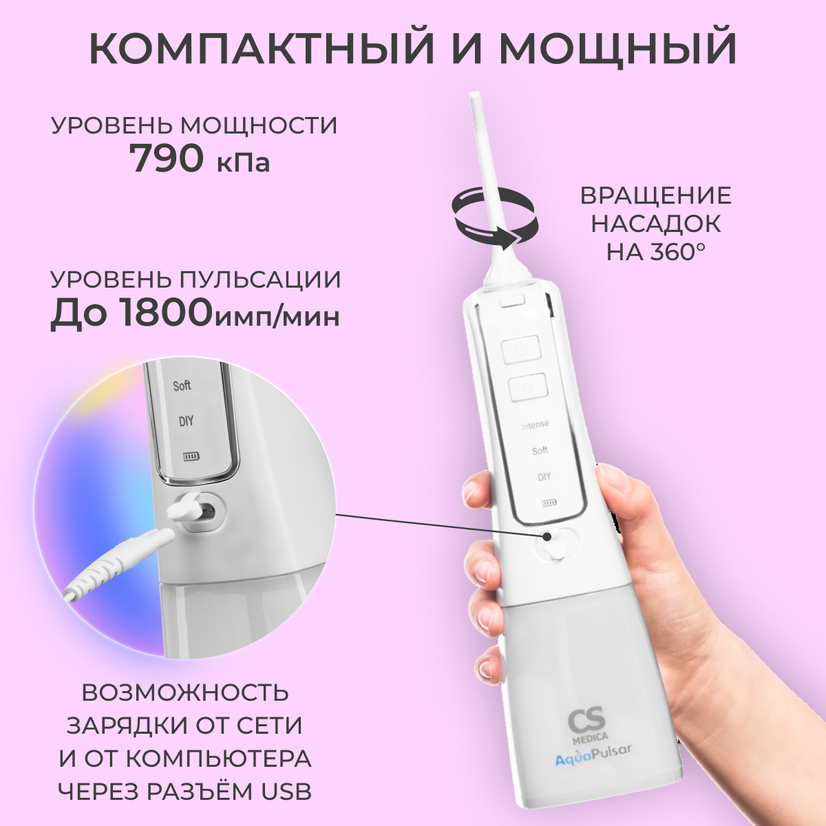 Ирригатор CS Medica AquaPulsar CS-8 Elite портативный, белый