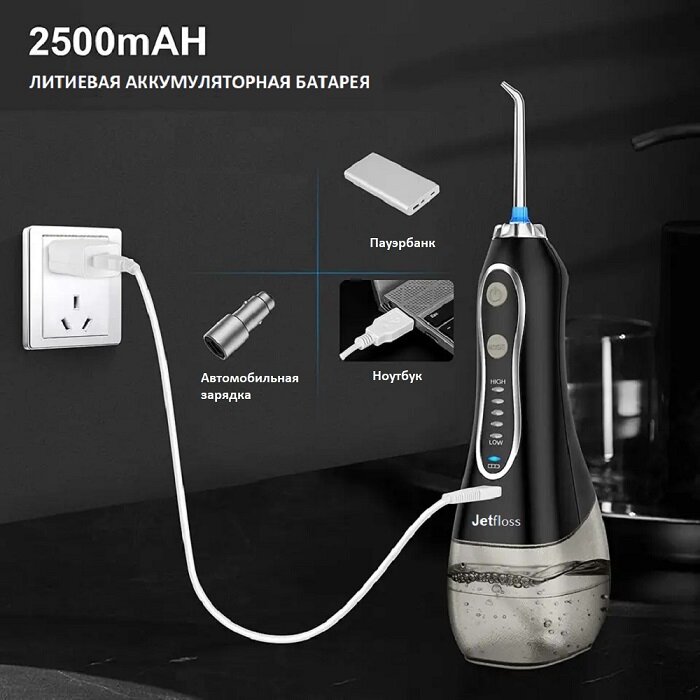 Ирригатор "JetFloss JF450", 8 насадок, 300мл, 5 режимов, встроенный аккумулятор
