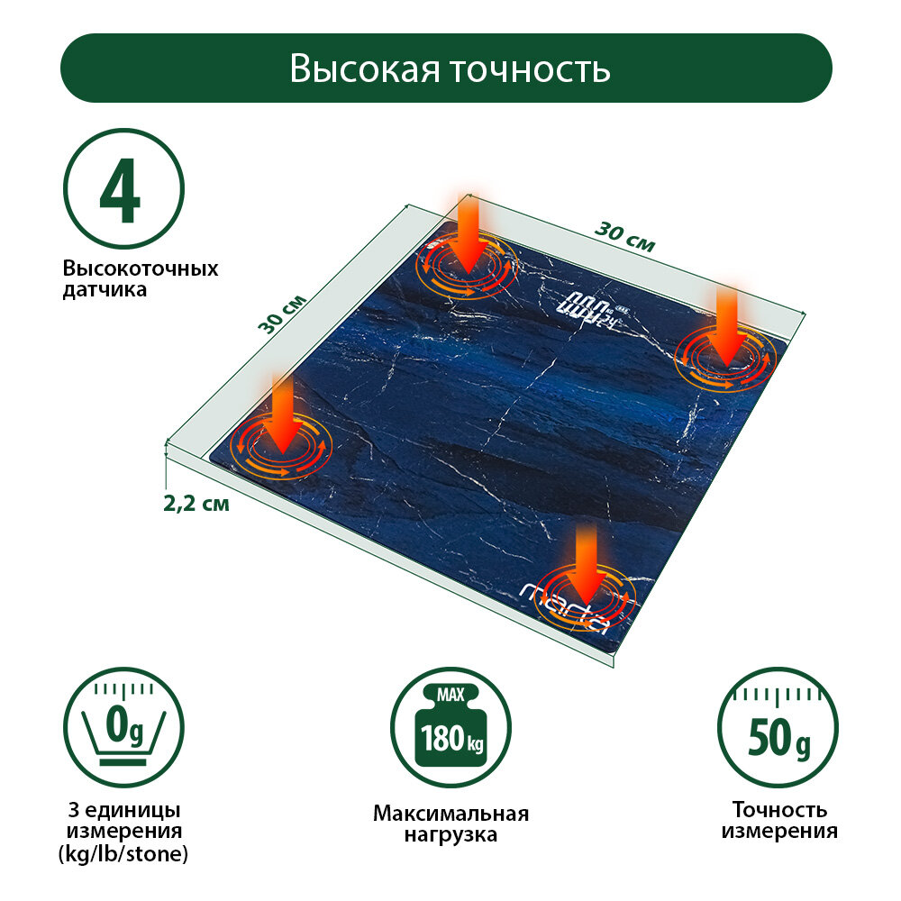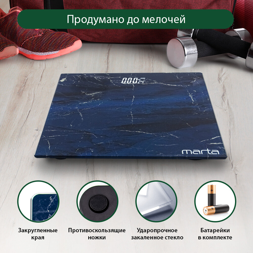 MARTA MT-SC3602 черный мрамор весы напольные сенсор LED дисплей, встроенный термометр интересное: