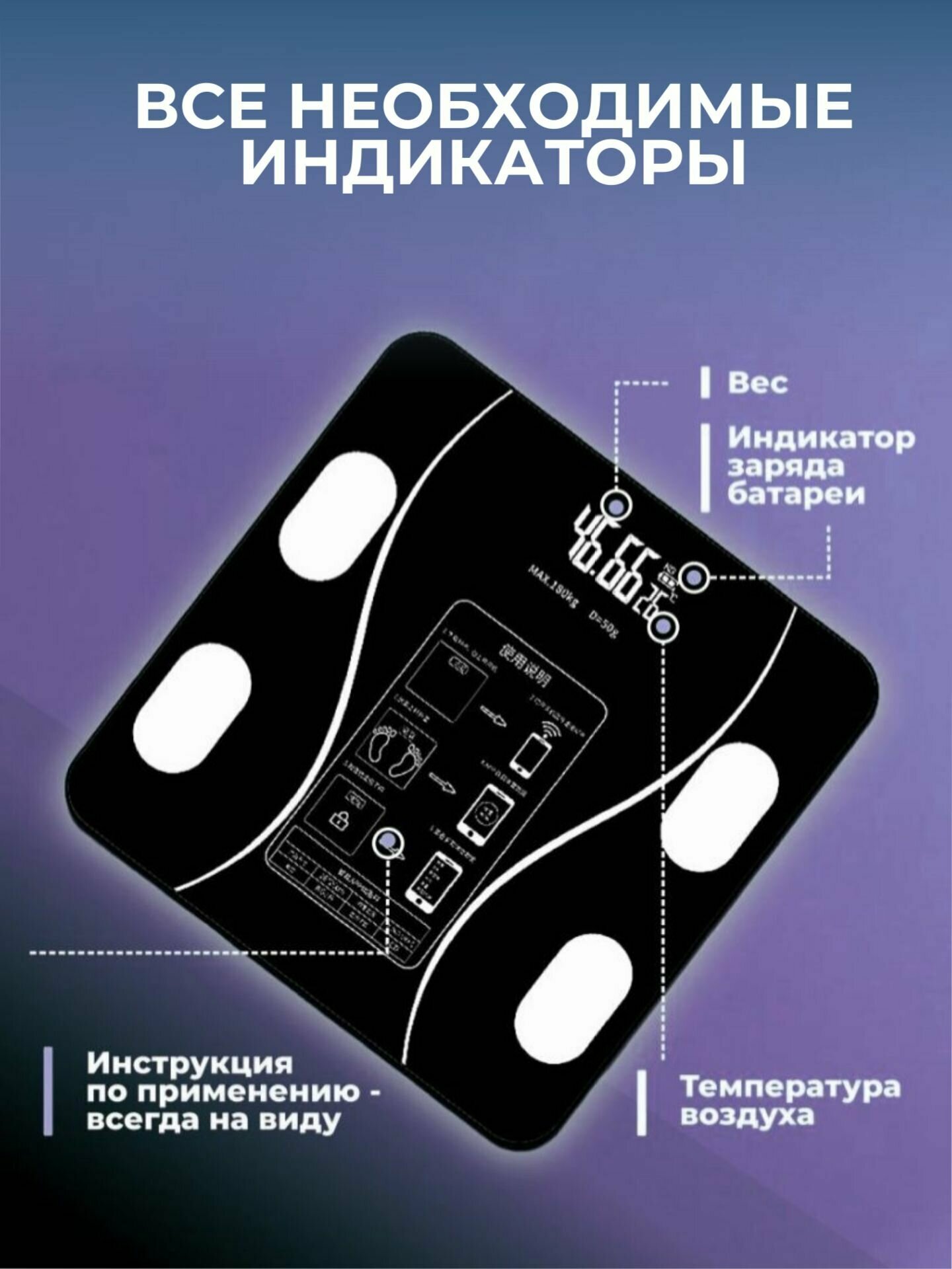 Купить Напольные умные весы c bmi / электронные весы с приложением для iPhone / Xiaomi / Android / iOS, черный