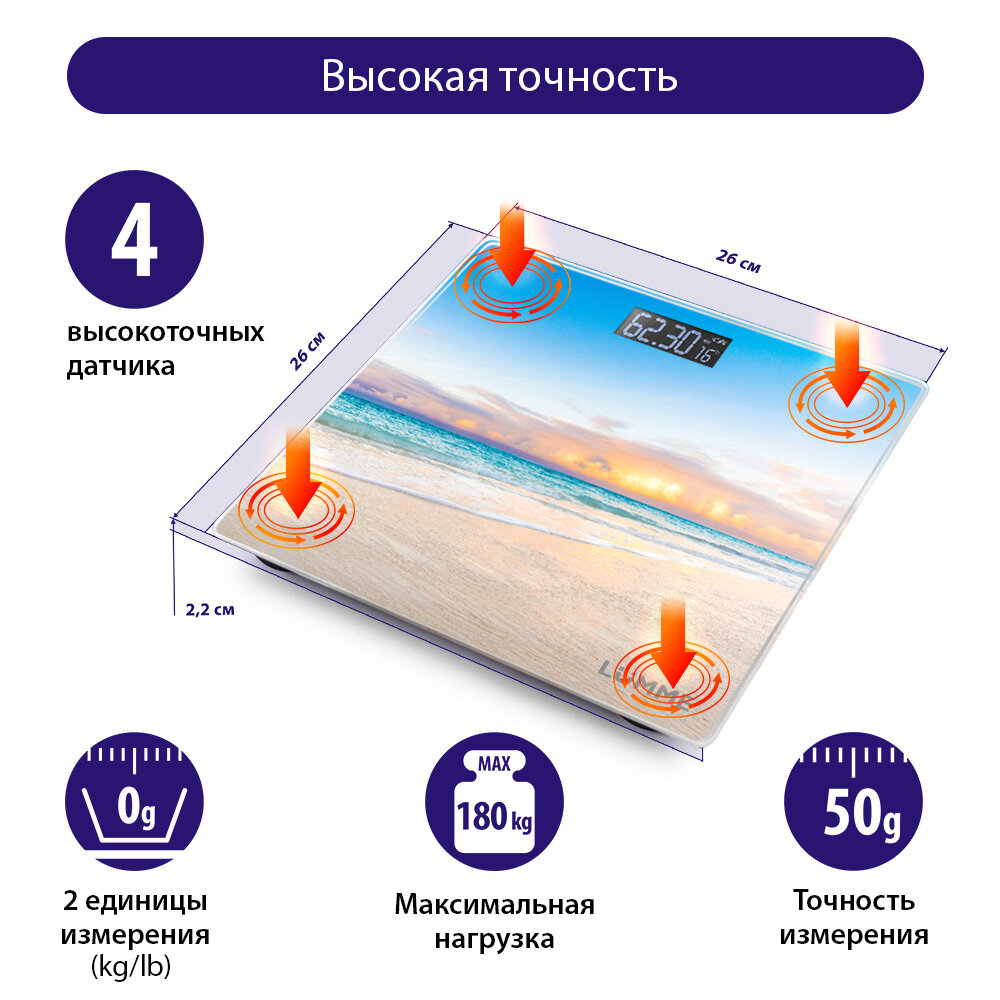 LUMME LU-1329 {new} закат над морем весы напольные сенсор, встроенный термометр интересное: