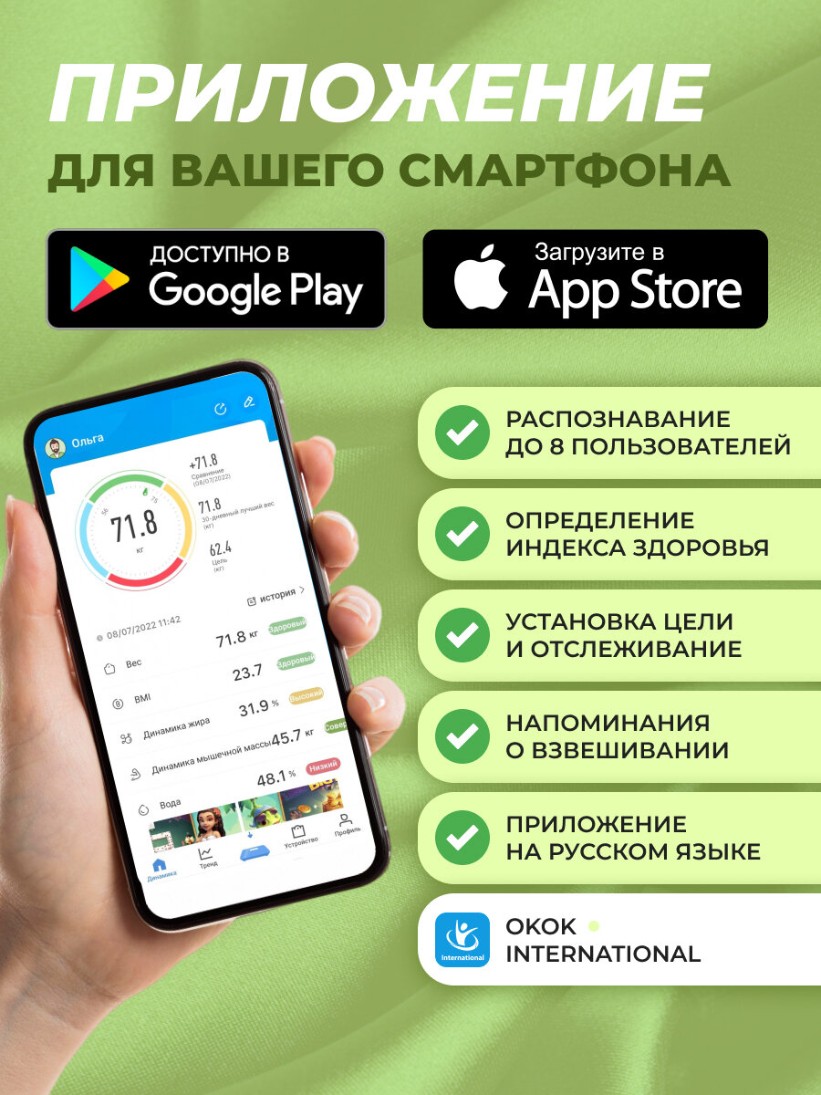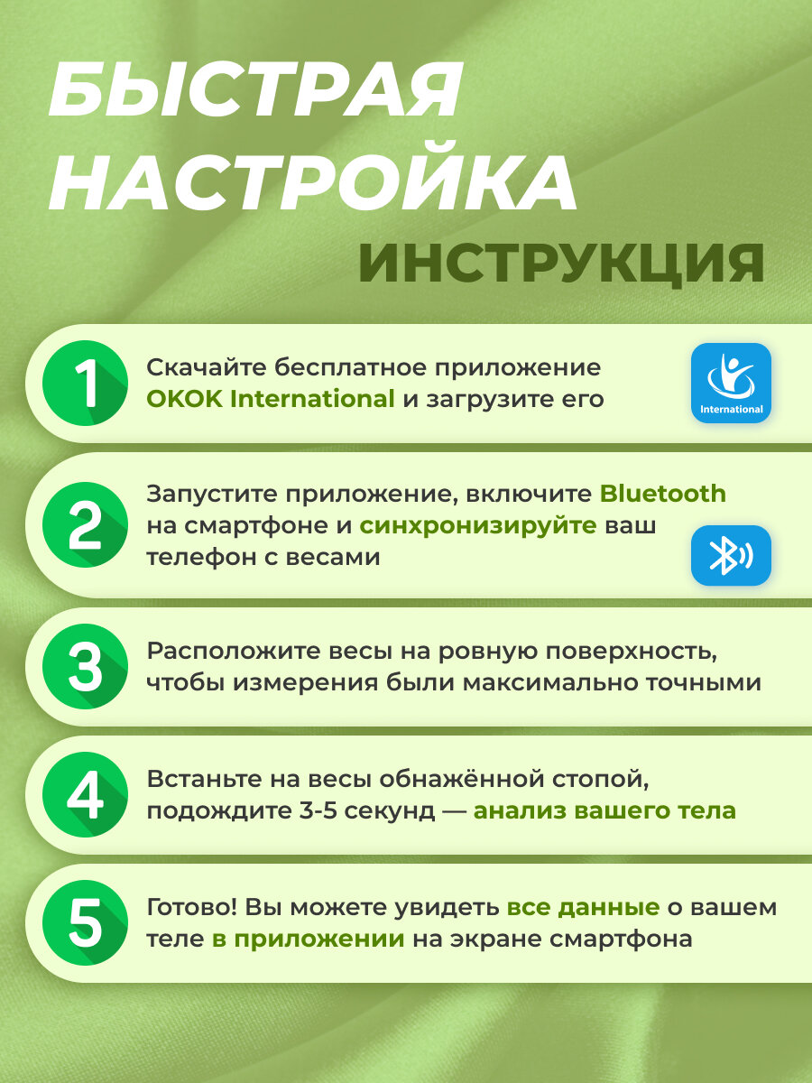 | Режимы | гость / детский / только масса тела |
