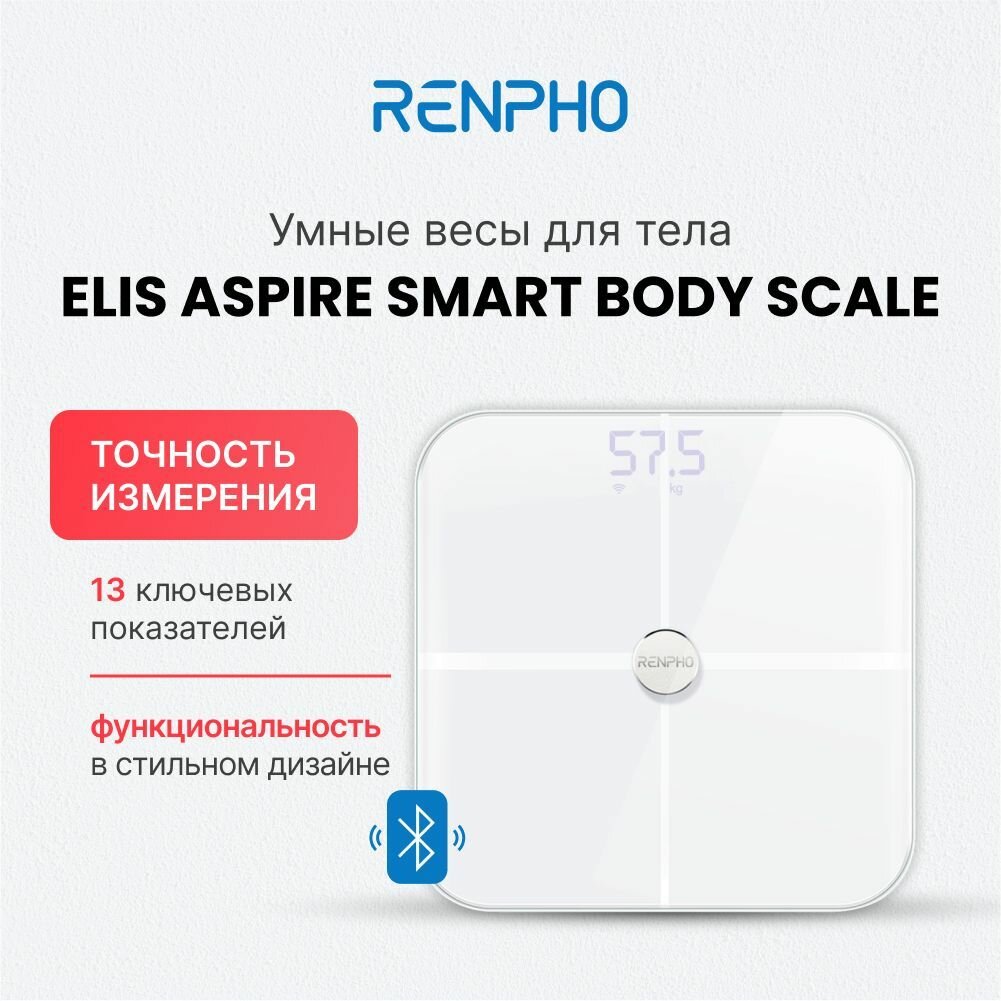Купить Весы напольные электронные RENPHO Elis Aspire - Smart WiFi Body Scale ES-BR001 умные с диагностикой 13 показателей, белые