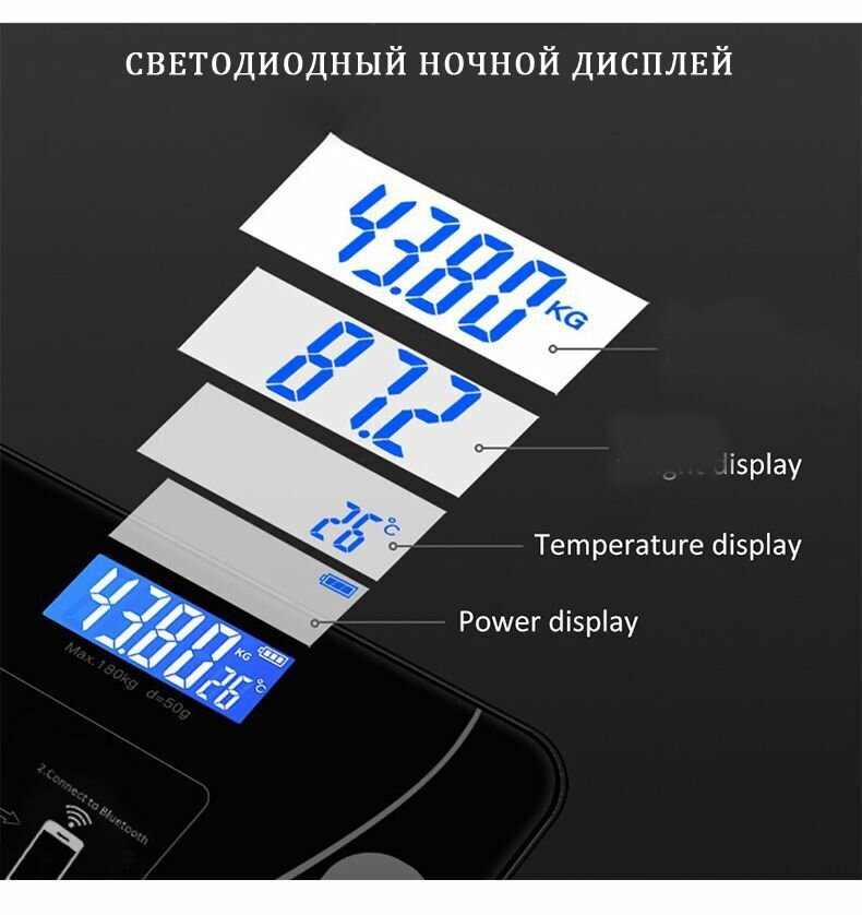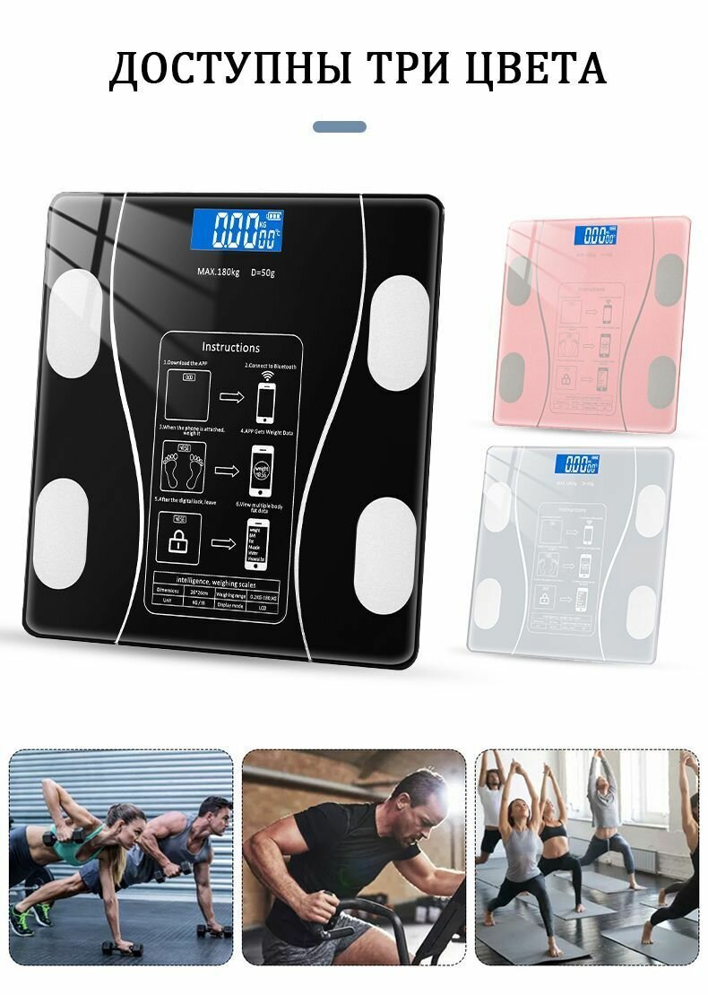 Напольные умные весы с расчётом 12 показателей качества тела, совместимые для Android, IOS интересное: