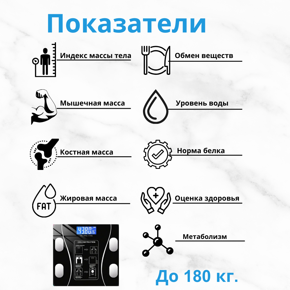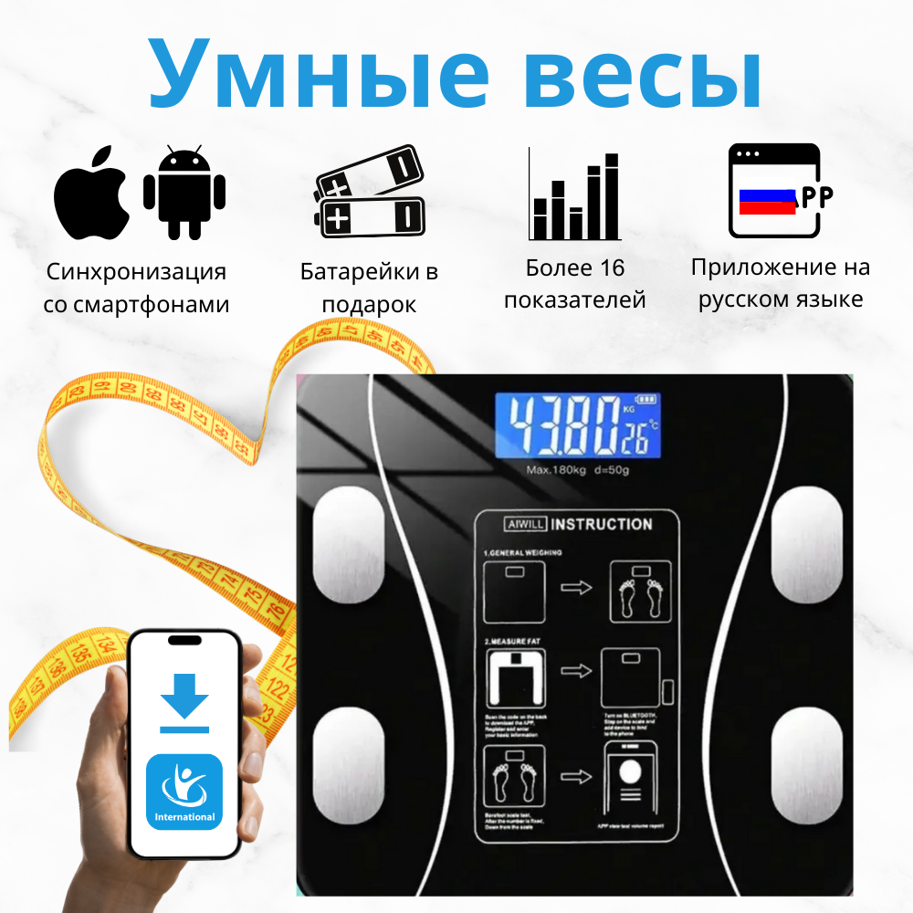 Весы напольные, электронные умные весы Bluetooth , диагностические, смарт, чёрный интересное: