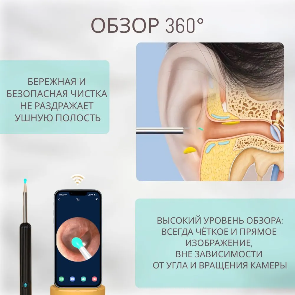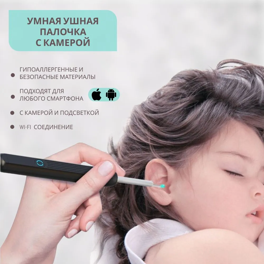 Умная ушная палочка эндоскоп для чистки ушей с камерой, многоразовая ухочистка, черная интересное: