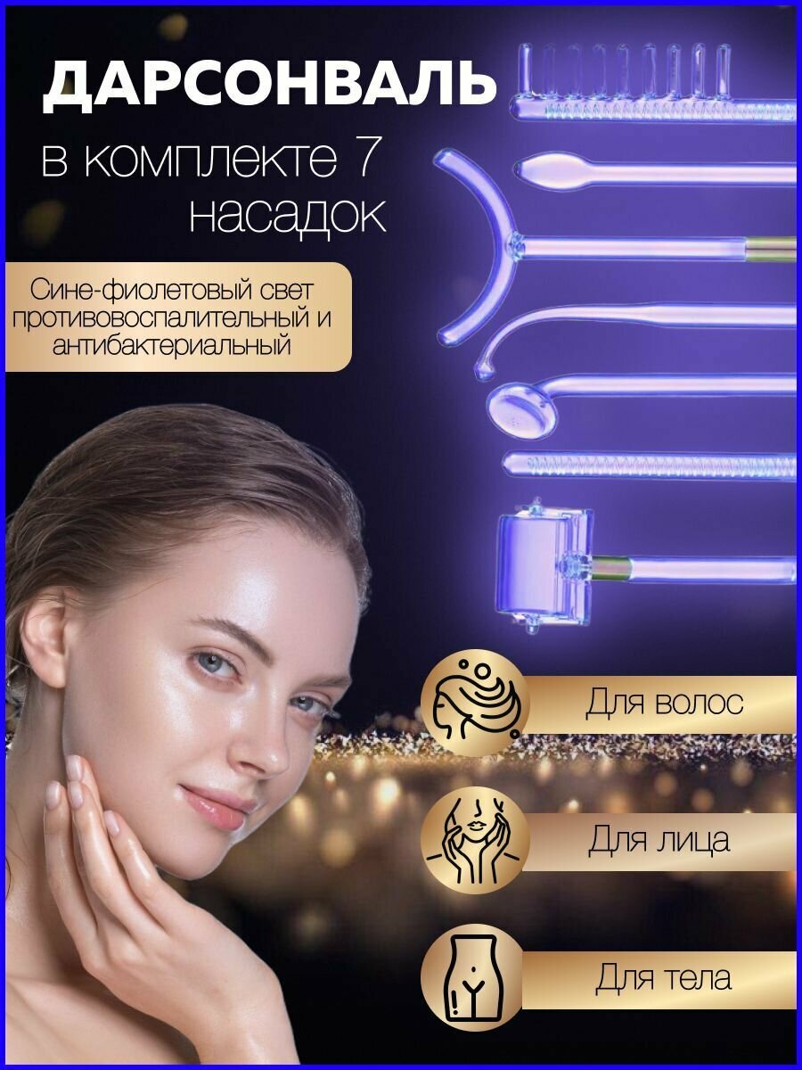Дарсонваль аппарат для лица тела и волос с 7 насадками антибактериальный массажер импульсный интересное: