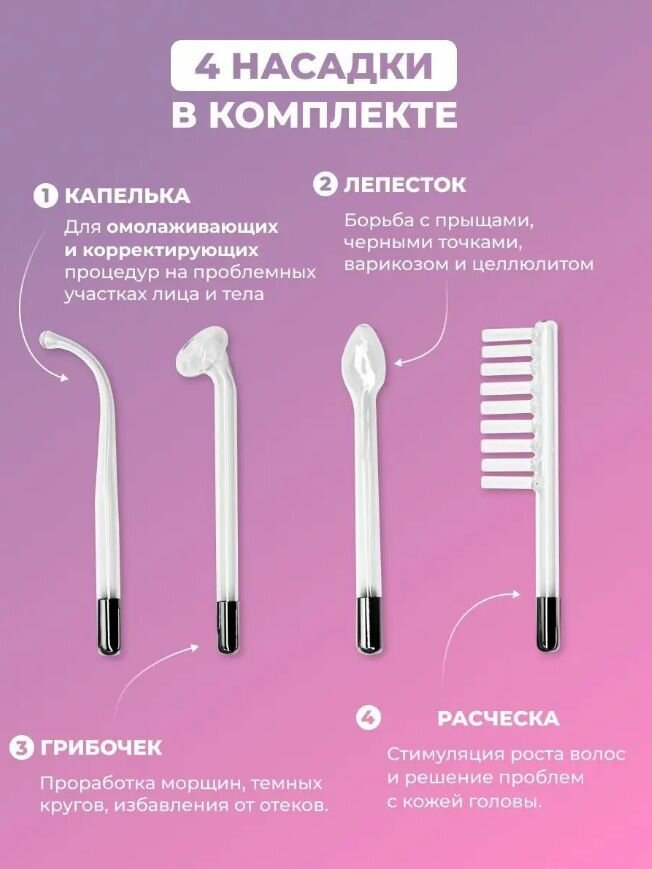 Дарсонваль для лица, тела и волос / Косметологический аппарат с 4 насадками ТН85-48 интересное: