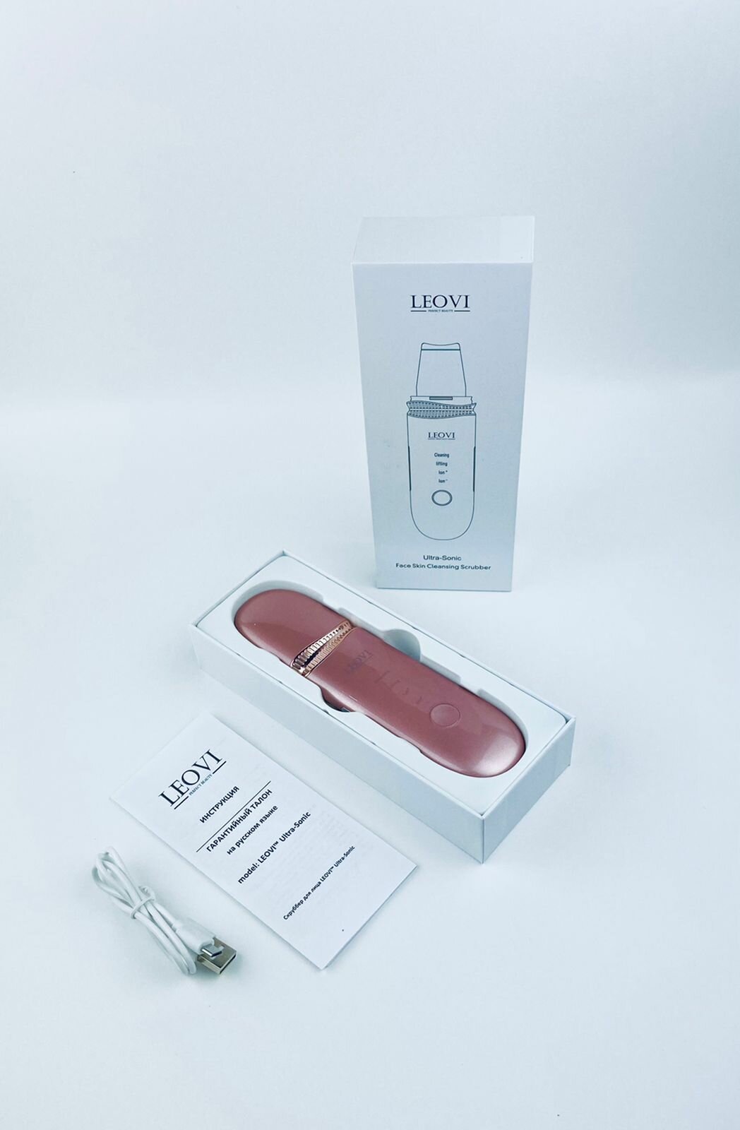 LEOVI Ультразвуковой аппарат для чистки лица ULTRA-SONIC/скруббер для лица/очищение пор/ультразвук/микротоки розовый интересное: