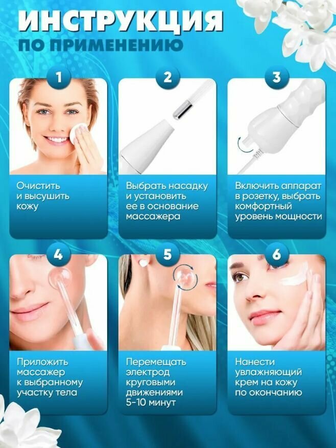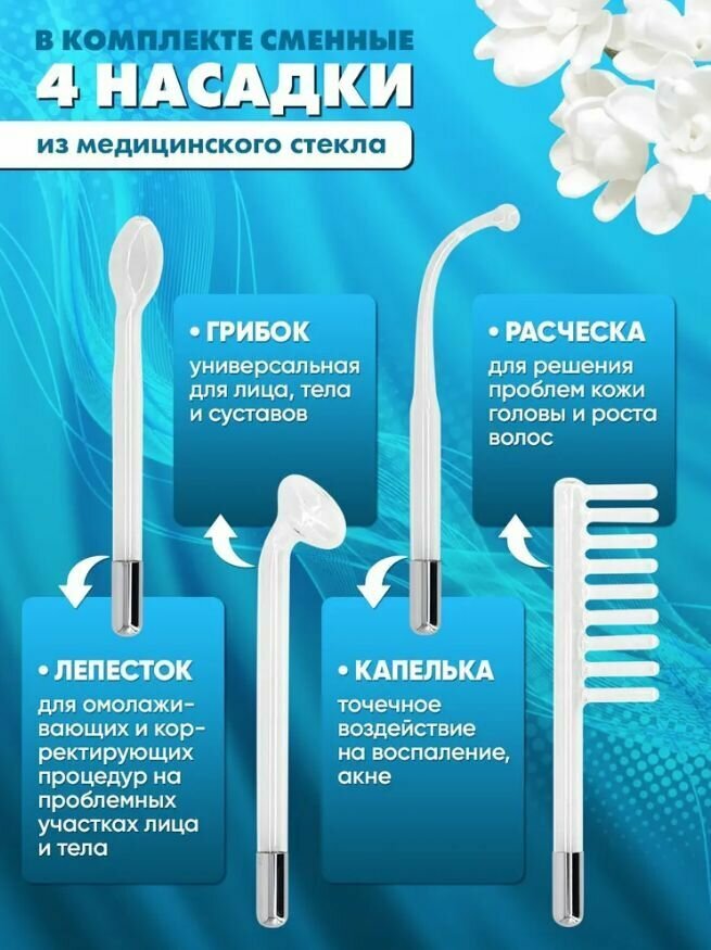 Дарсонваль косметологический аппарат 4 насадки, белый интересное: