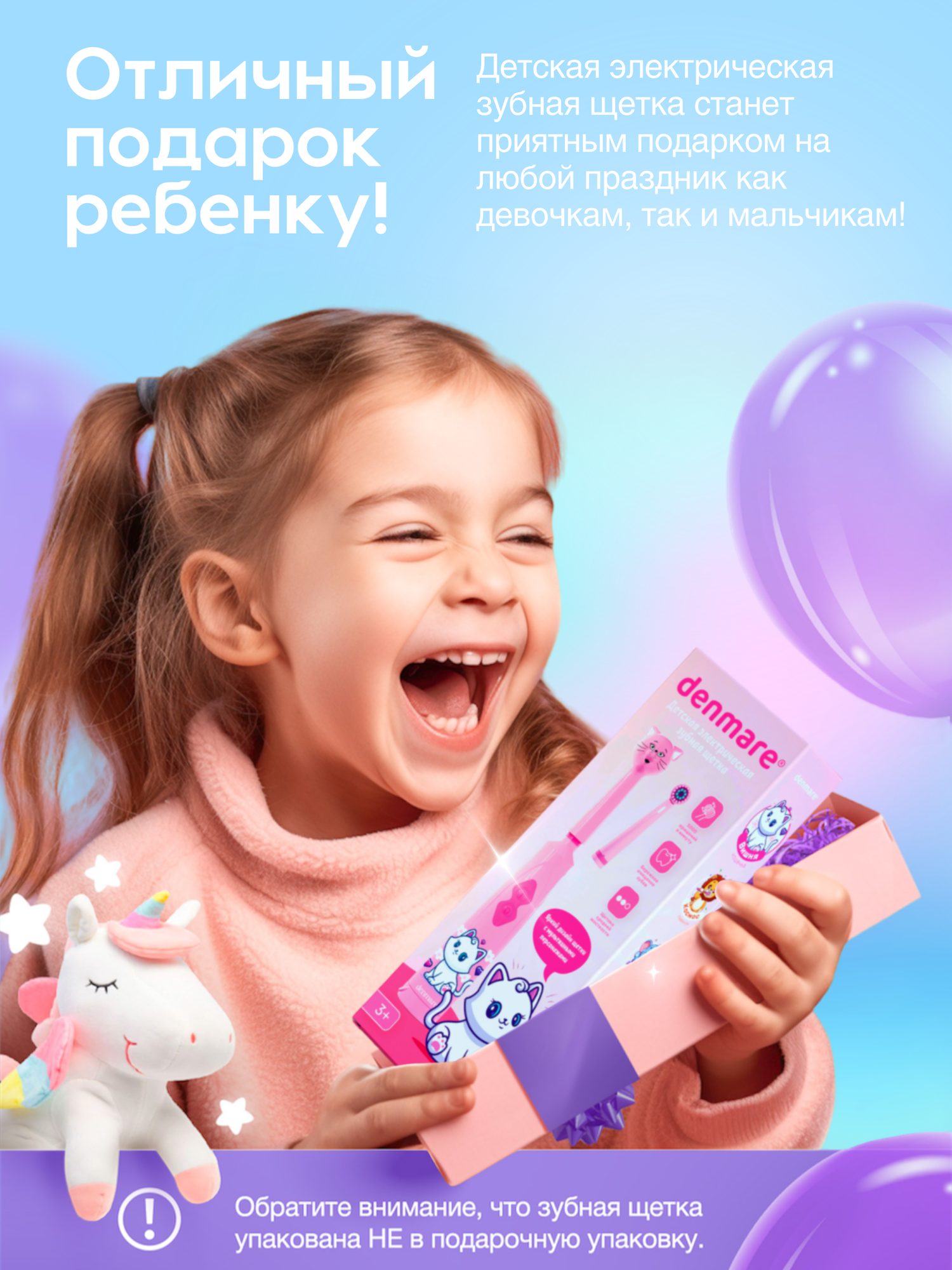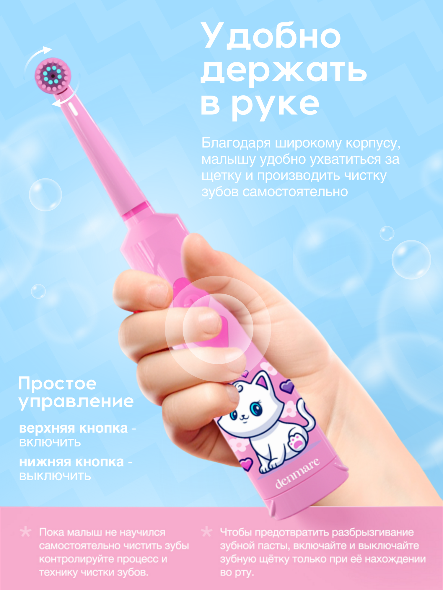 СохранитьДетская электрическая зубная щетка DENMARE KIDS DM-01-1 (Pink cat) интересное: