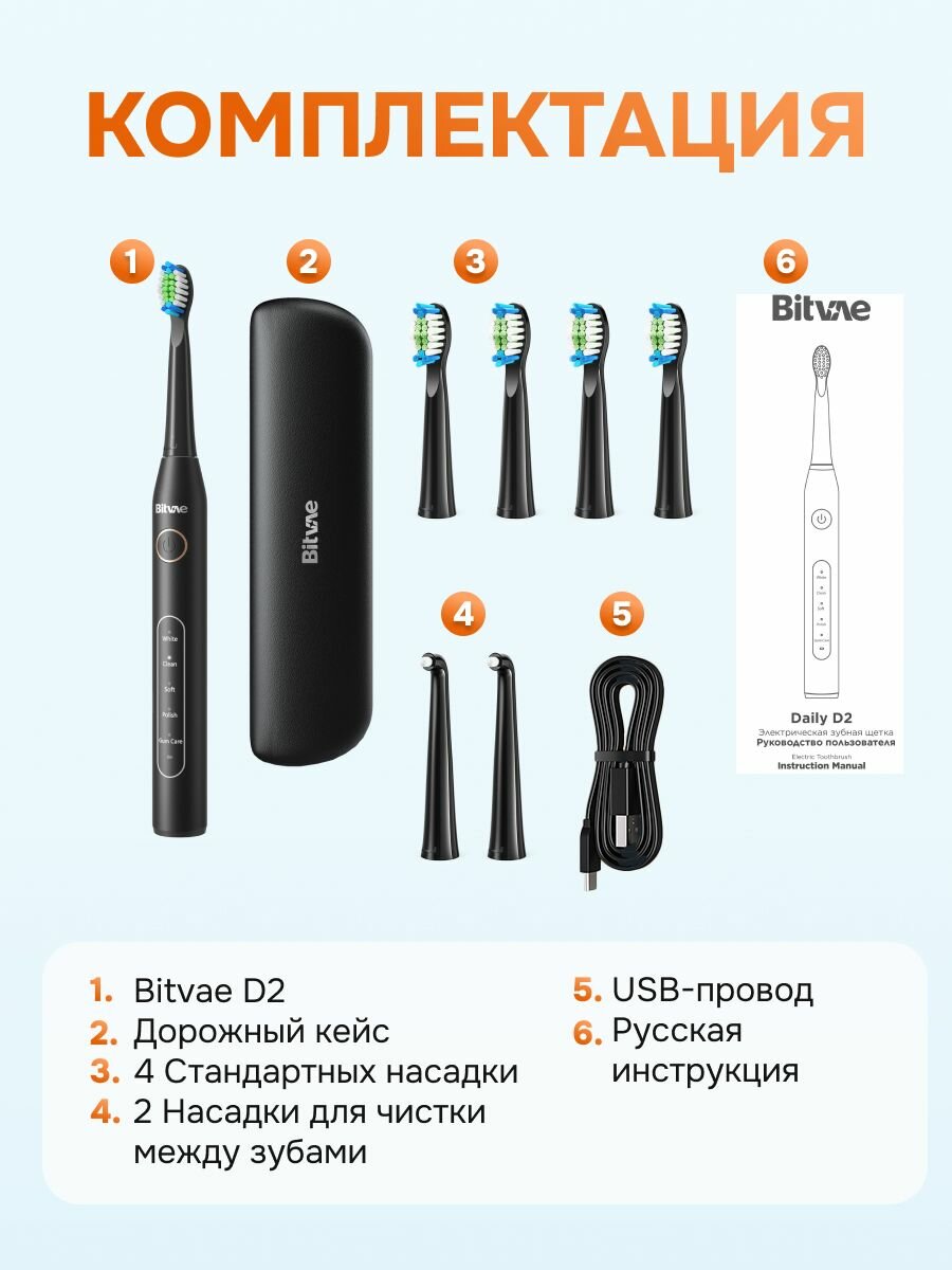 Купить Электрическая зубная щетка Bitvae D2 Daily Toothbrush + Case (D2 + Case) ,GLOBAL, Black