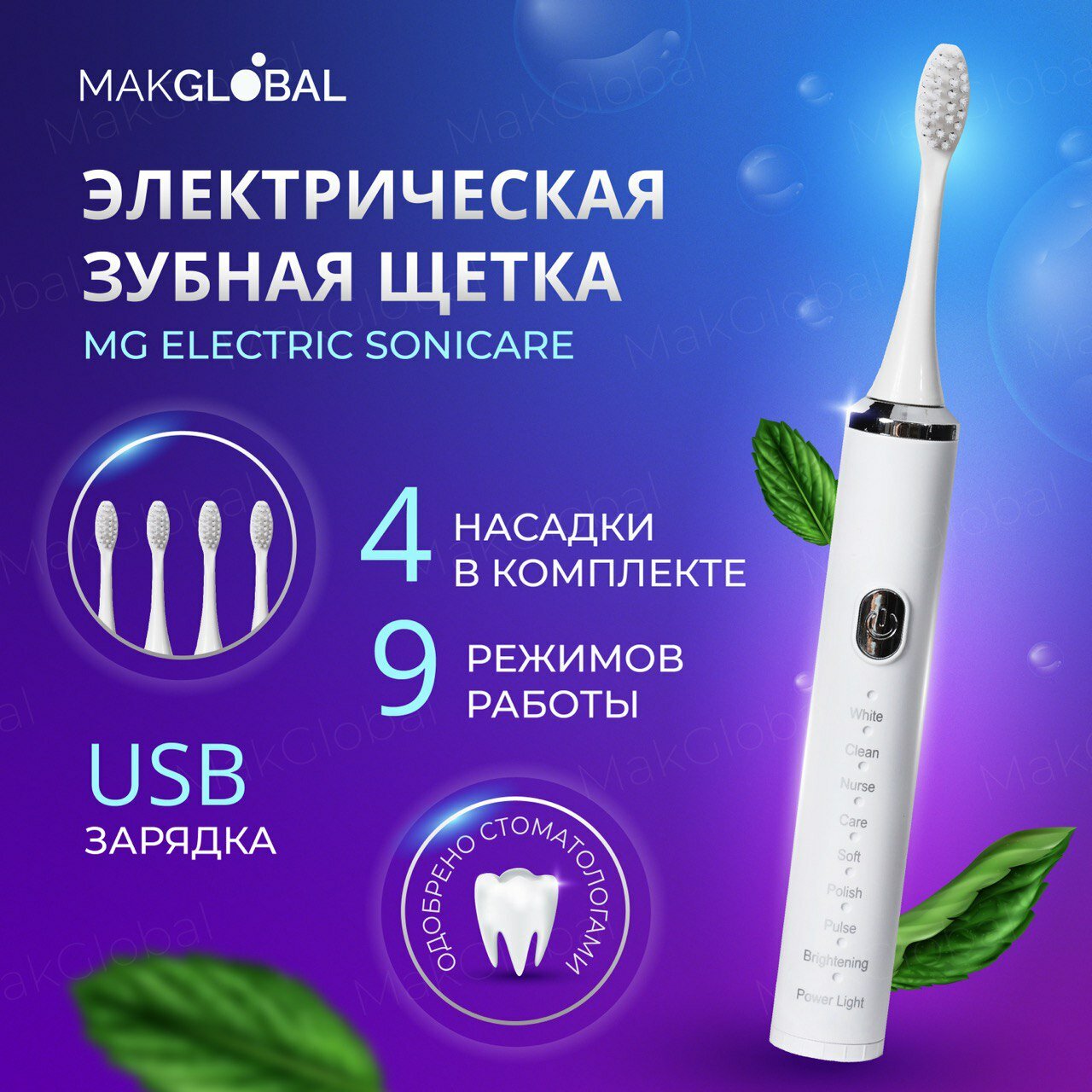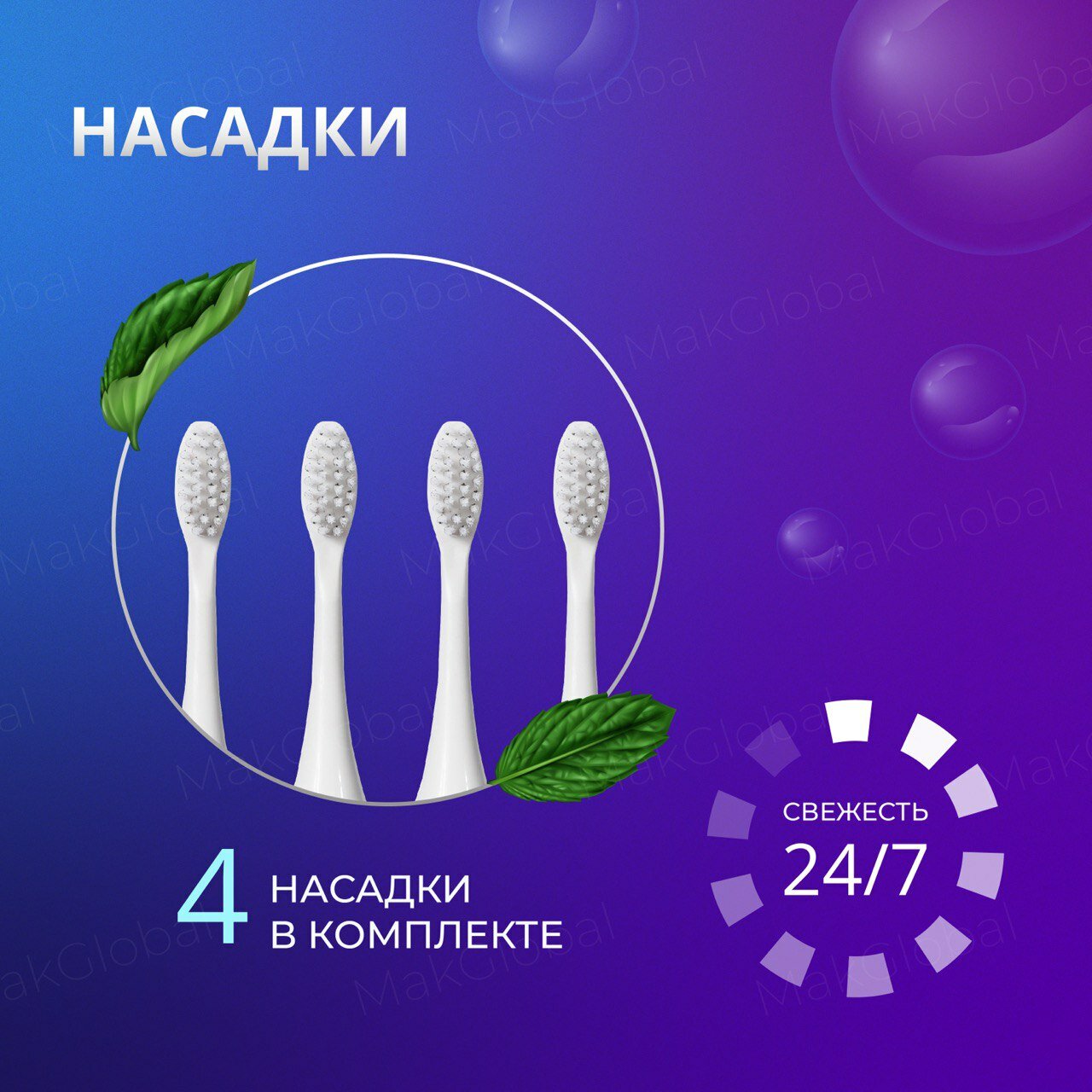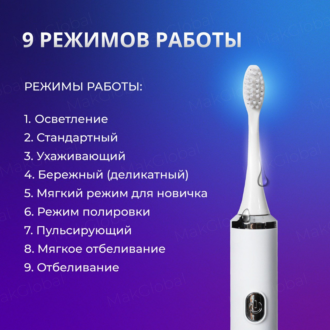 Электрическая ультразвуковая зубная щетка - 4 насадки, 9 режимов интересное: