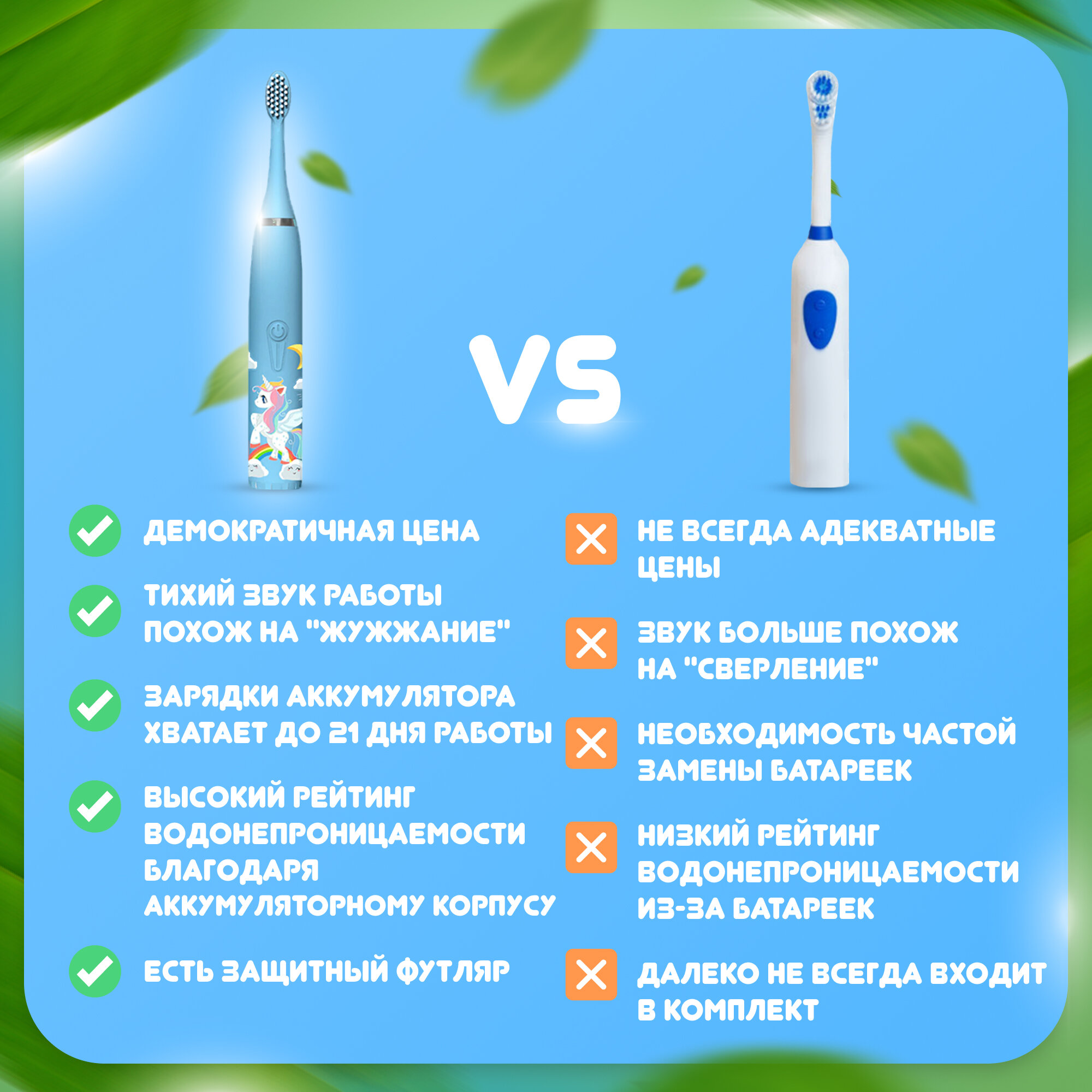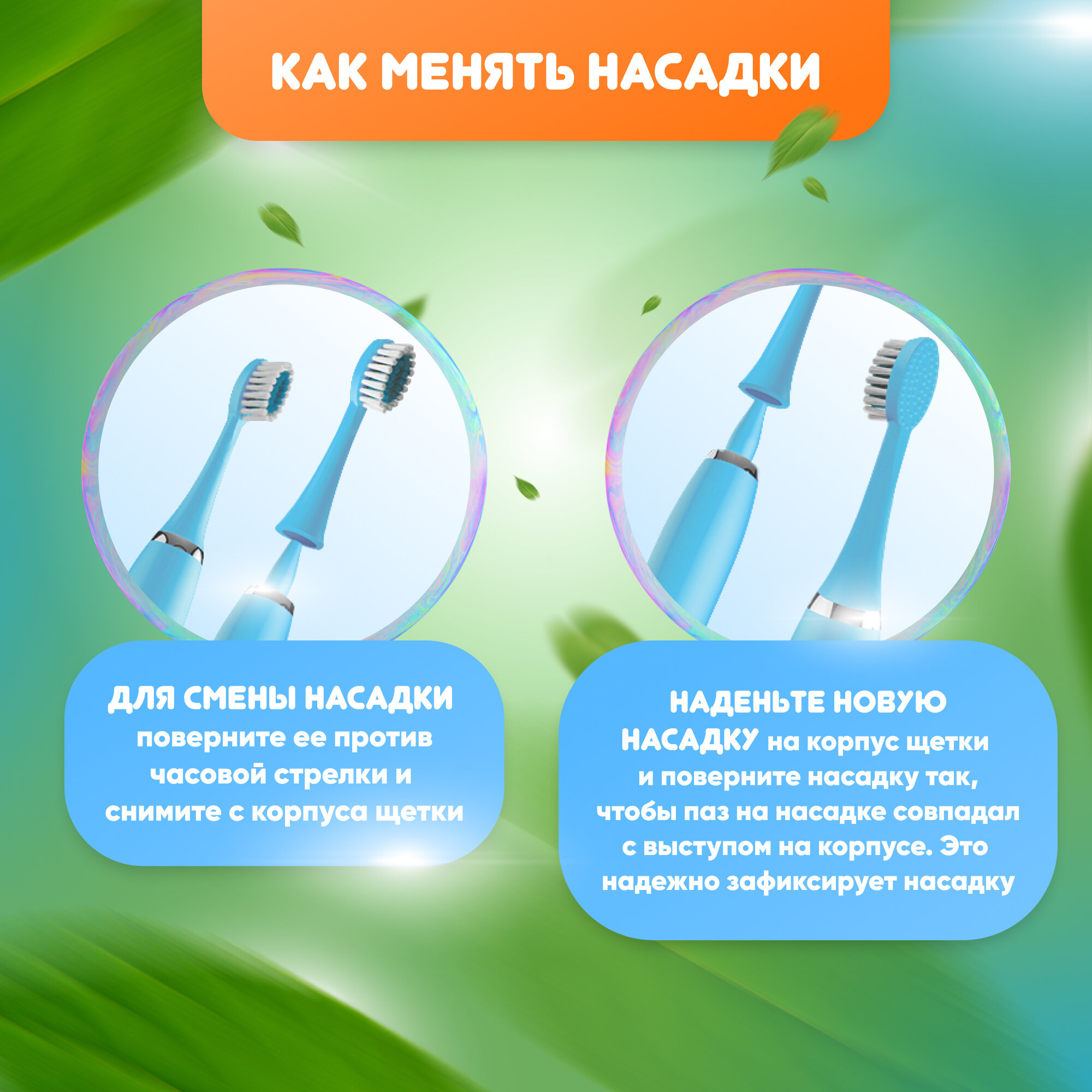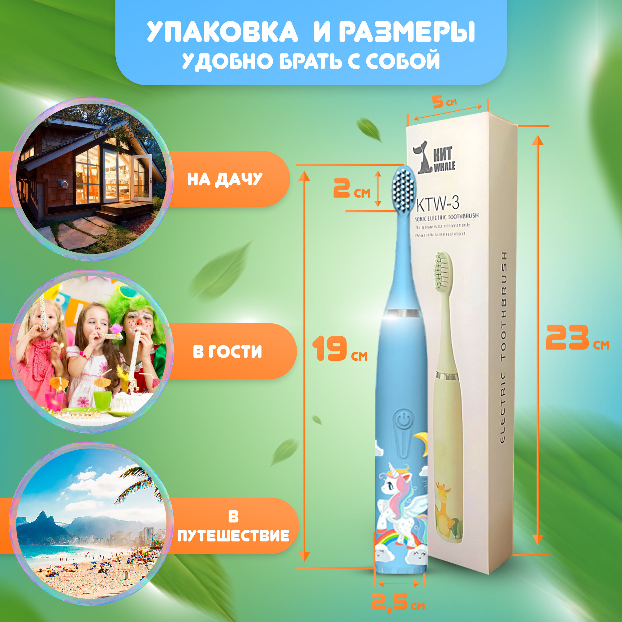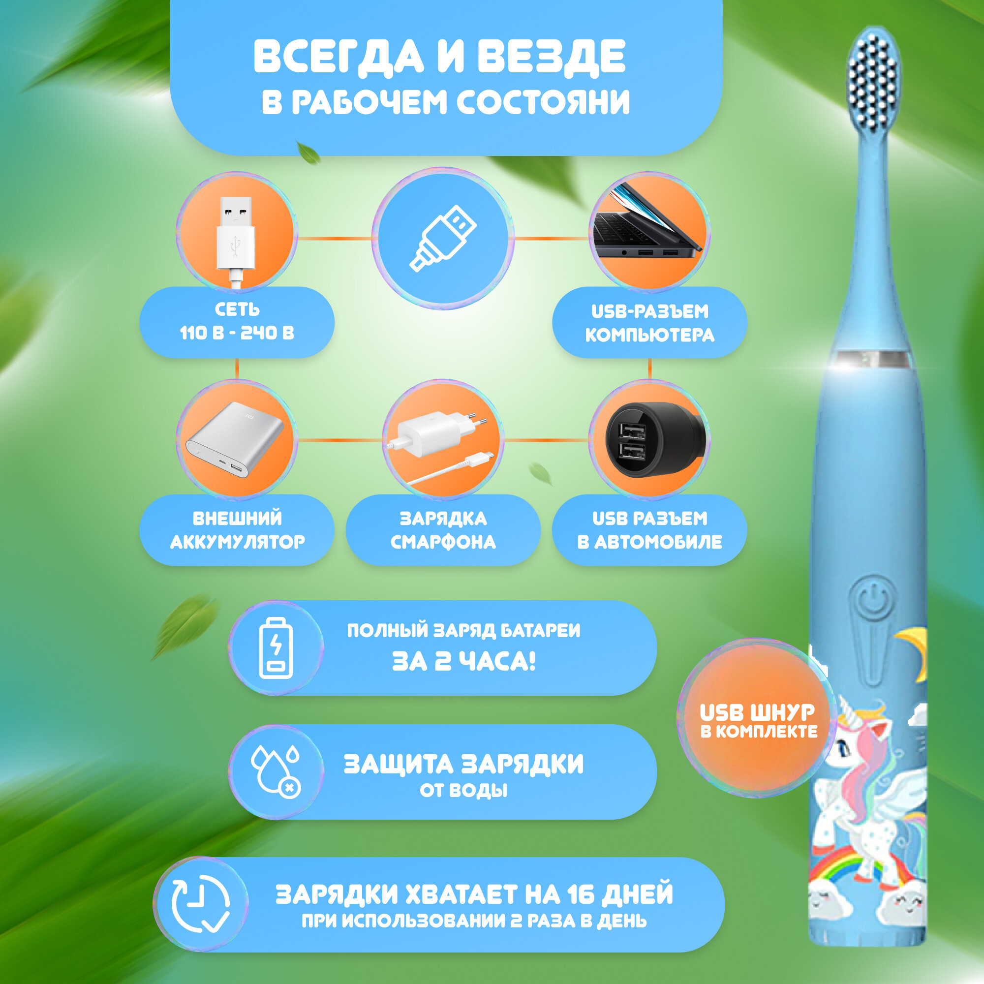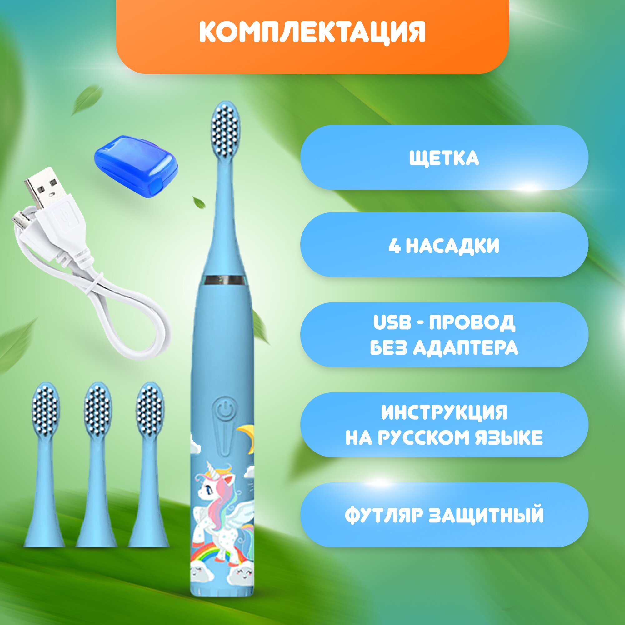 Электрическая звуковая зубная щетка для детей от 3 до 12 лет с автоотключением и таймером 20 секунд / индикация заряда / 4 насадки / голубая интересное: