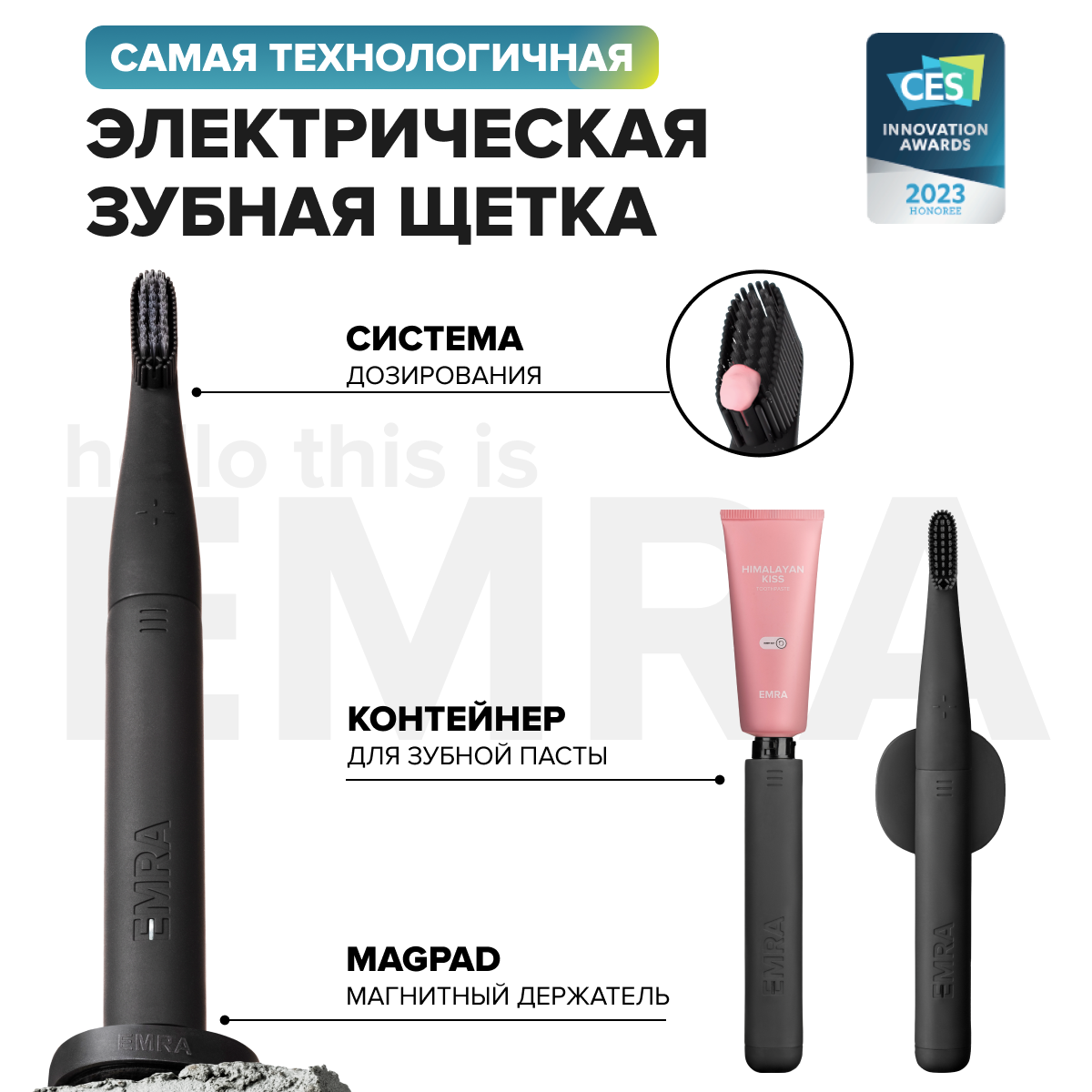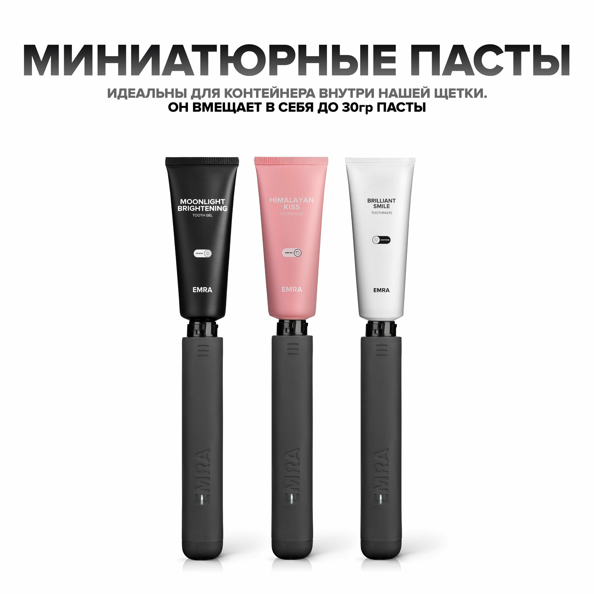 Электрическая зубная щетка с контейнером для пасты, дополнительной насадкой, магнитным держателем и тремя мини-версиями зубных паст EMRA интересное: