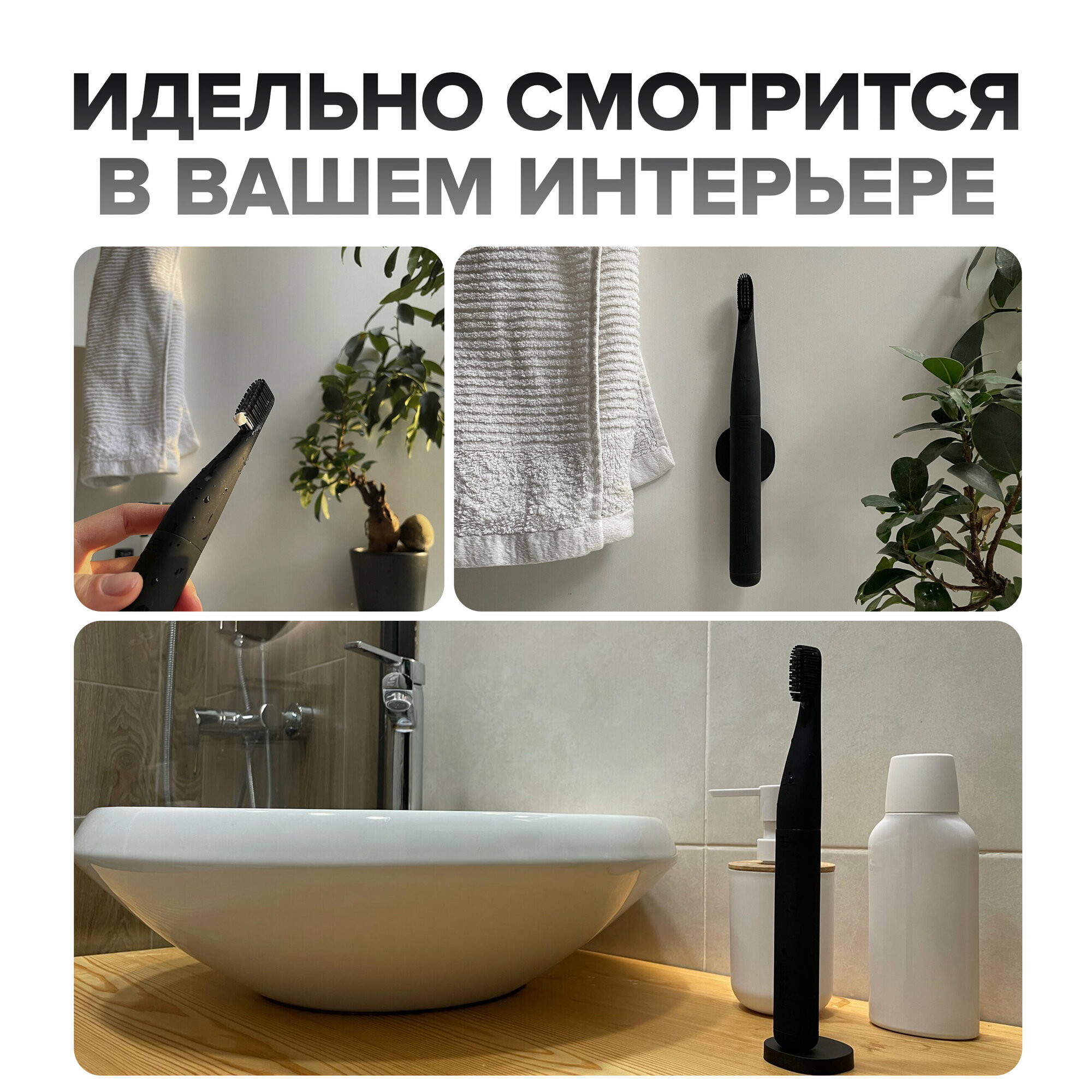 | Подробная комплектация | Электрическая зубная щетка, дополнительная насадка, три мини пасты, магнитный держатель |