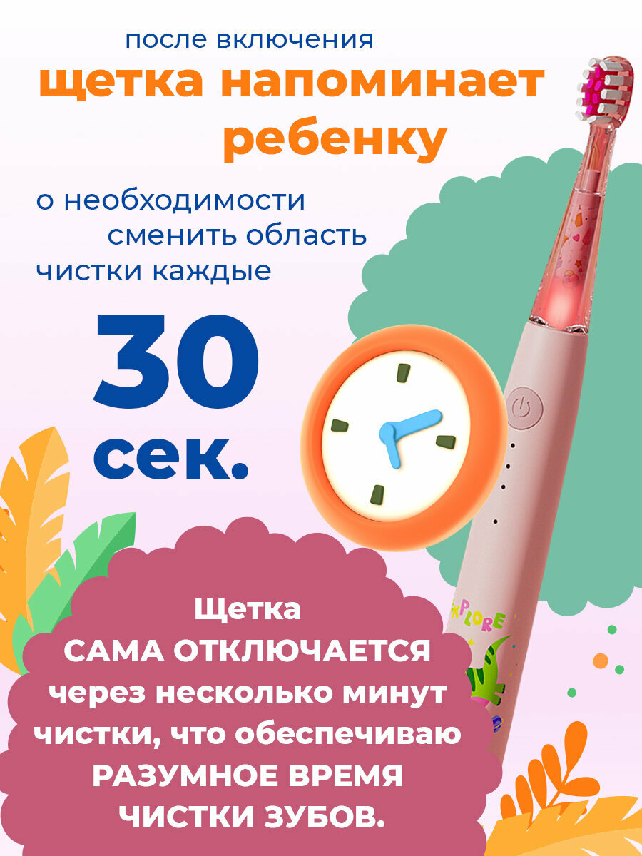 Электрическая зубная щетка детская звуковая с таймером чистки для детей, 2 насадки, розовый интересное:
