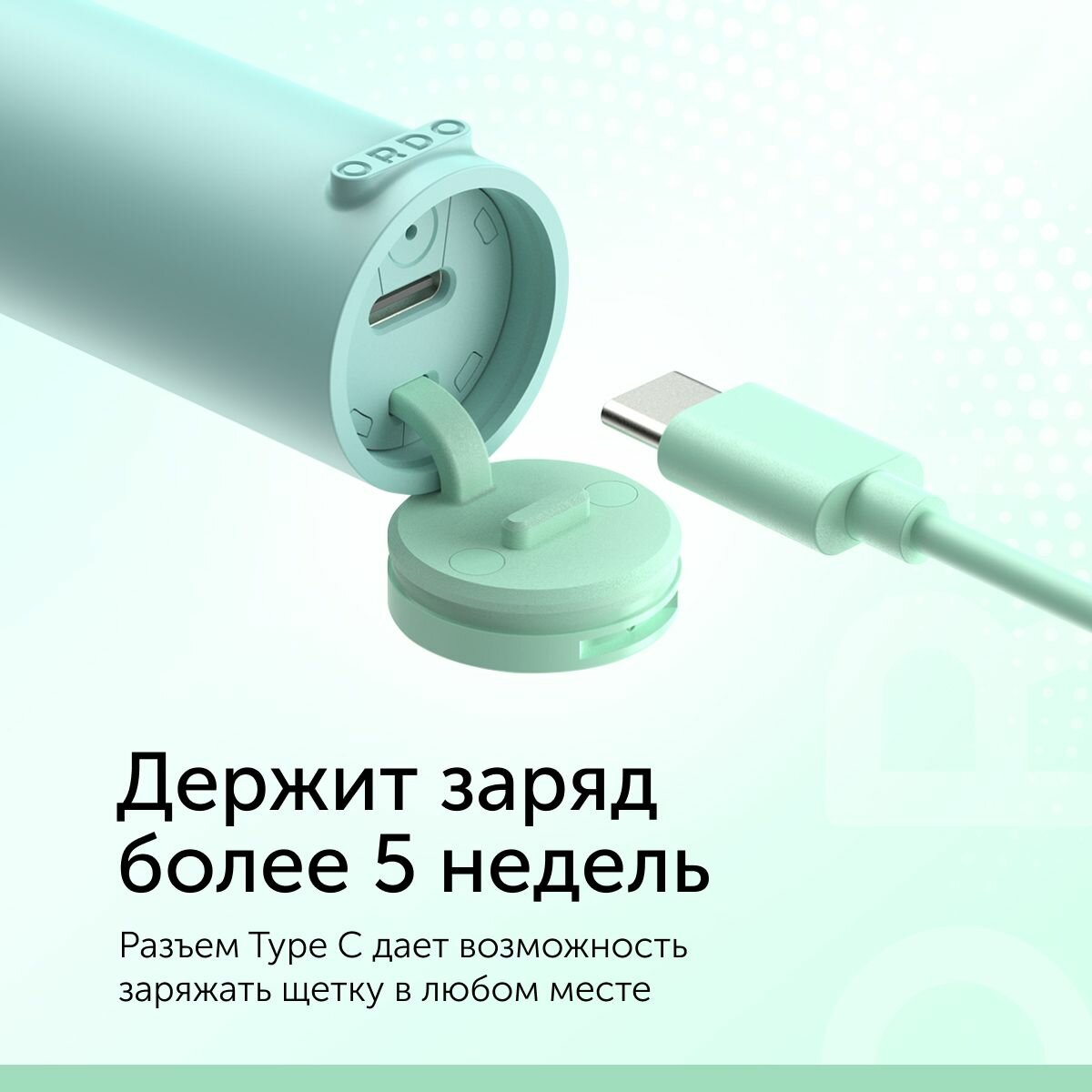 Купить Электрическая зубная щетка ORDO Sonic Lite Sage с 2 режимами, таймером и кабелем для зарядки, зеленая