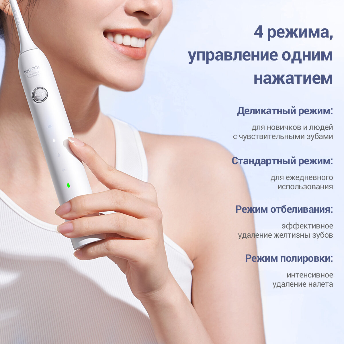 Электрическая зубная щетка Soocas D3 Pro, со стерилизатором, 4 насадки, 4 режима чистки, интересное: