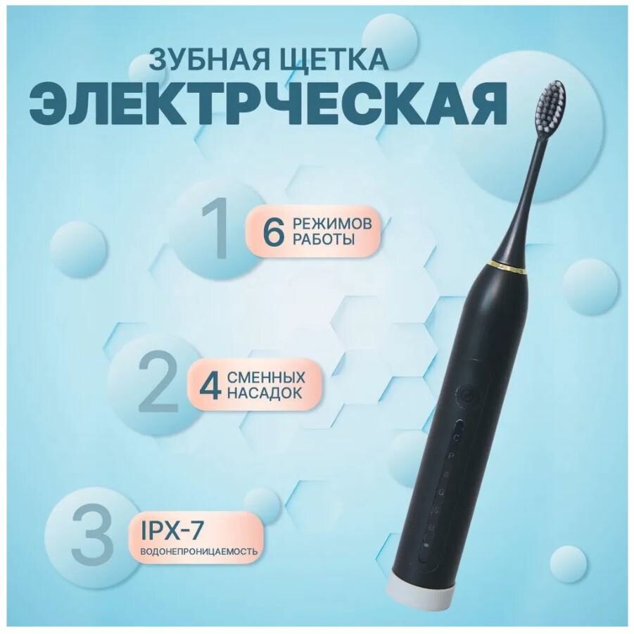 Купить Электрическая ультразвуковая зубная щетка X7, 6 режимов работы 4 насадки, цвет черный