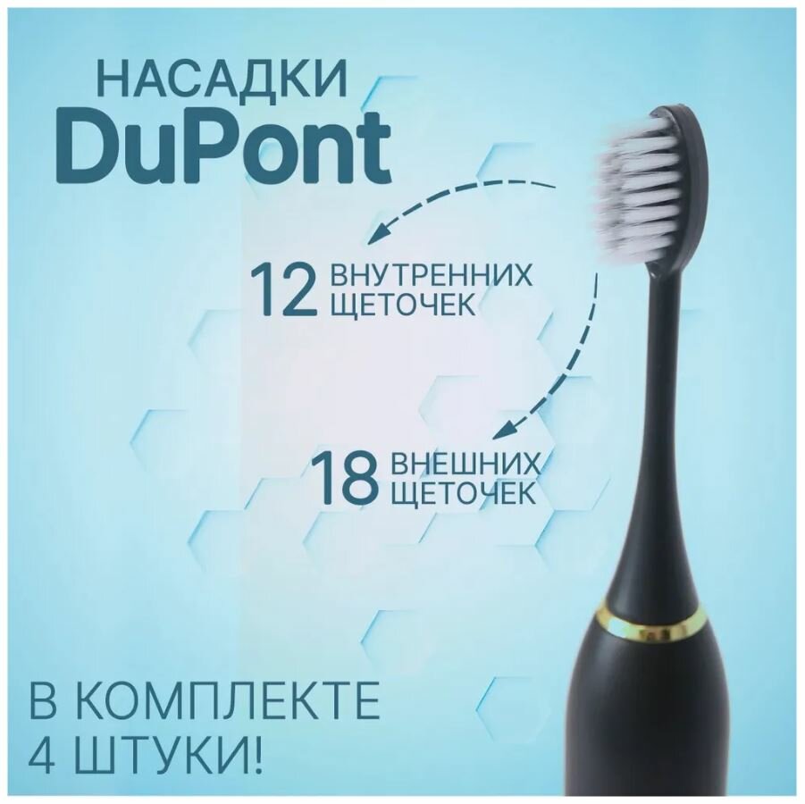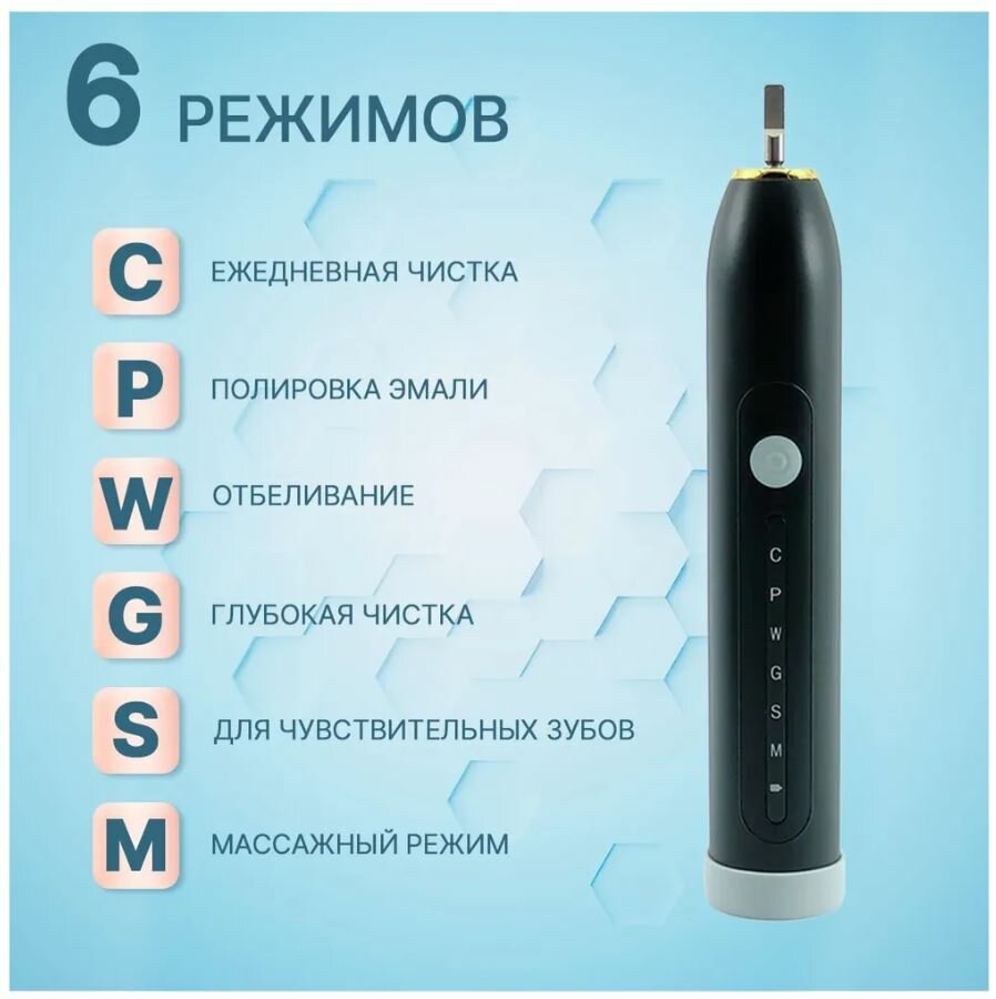 Электрическая ультразвуковая зубная щетка X7, 6 режимов работы 4 насадки, цвет черный интересное: