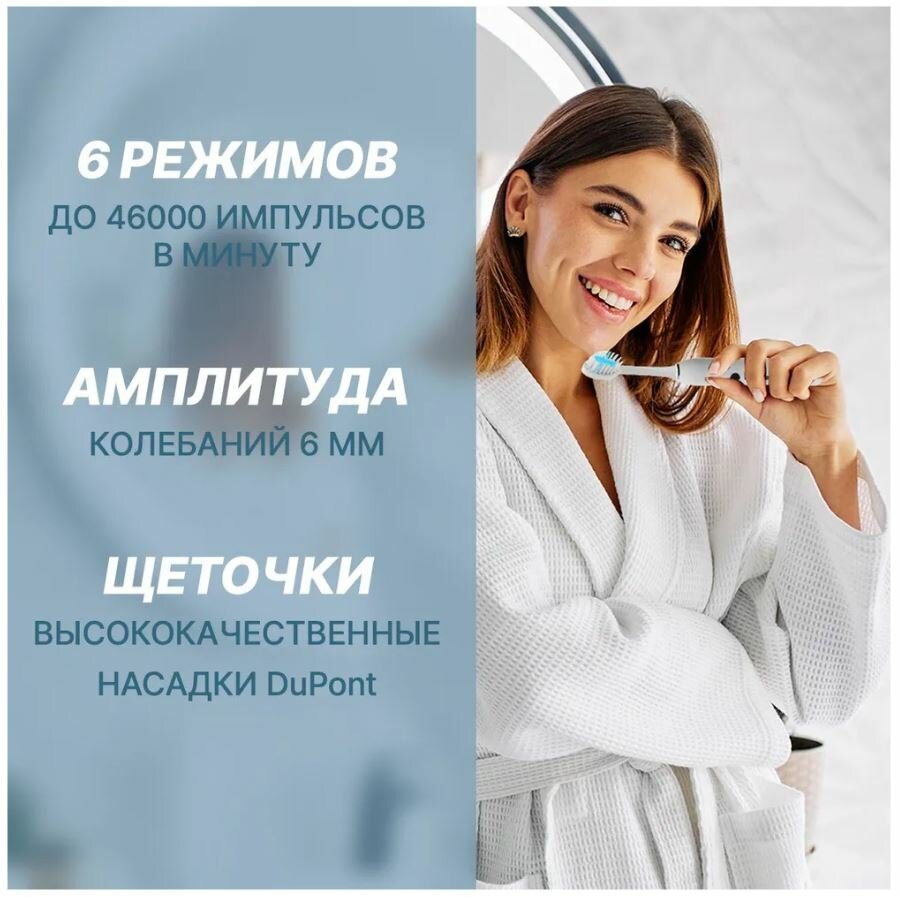 | Режимы работы | деликатная чистка / ежедневная чистка / массаж / отбеливание / полировка / чистка языка |
