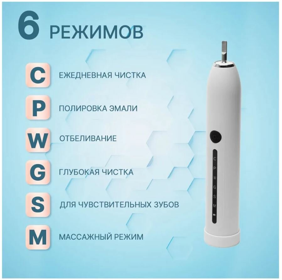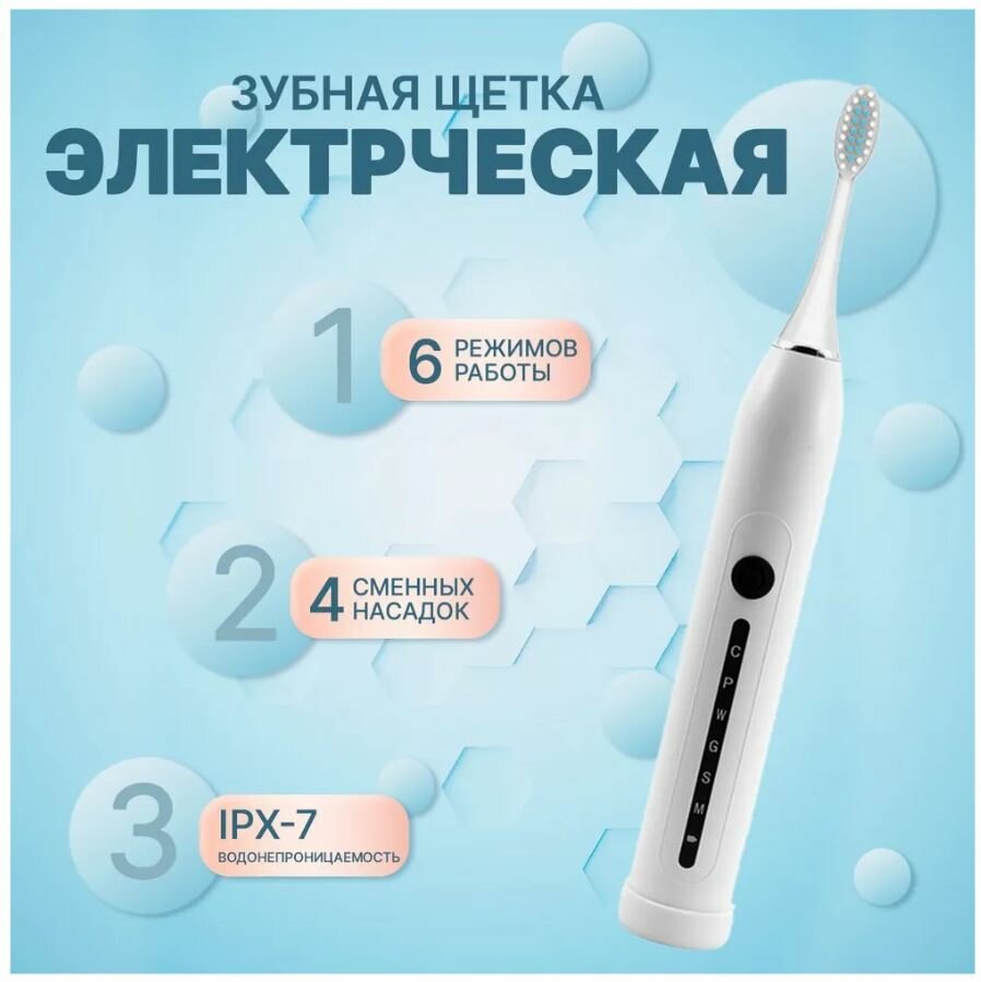 Электрическая ультразвуковая зубная щетка X7, 6 режимов работы 4 насадки, цвет белый интересное: