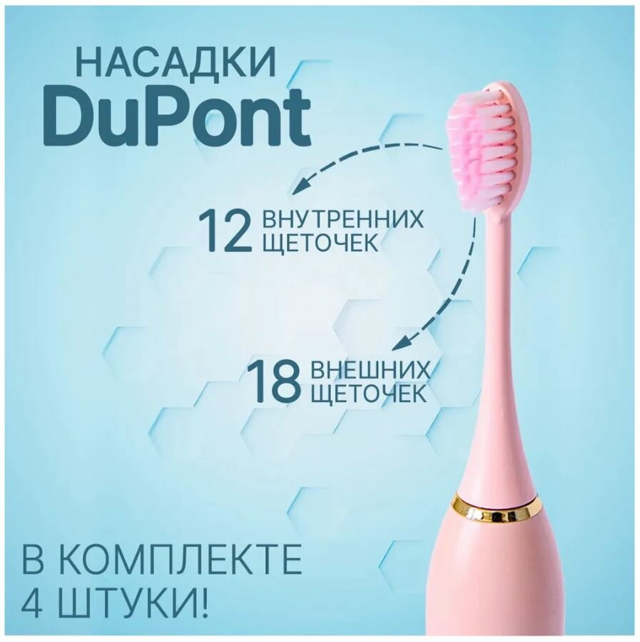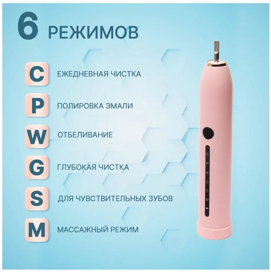 Электрическая ультразвуковая зубная щетка X7, 6 режимов работы 4 насадки, цвет розовый интересное: