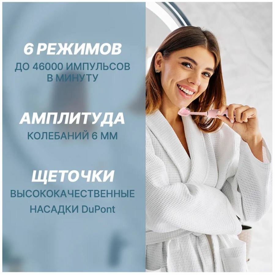 Купить Электрическая ультразвуковая зубная щетка X7, 6 режимов работы 4 насадки, цвет розовый