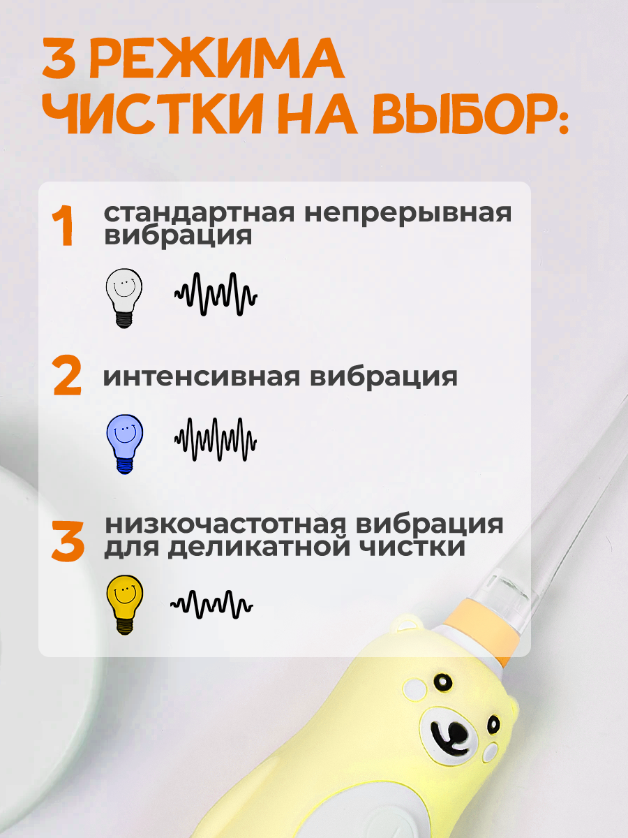 СохранитьЭлектрическая звуковая зубная щетка детская BANNER Happy Bear с аккумулятором. Зарядная док-станция + 2 насадки в комплекте интересное: