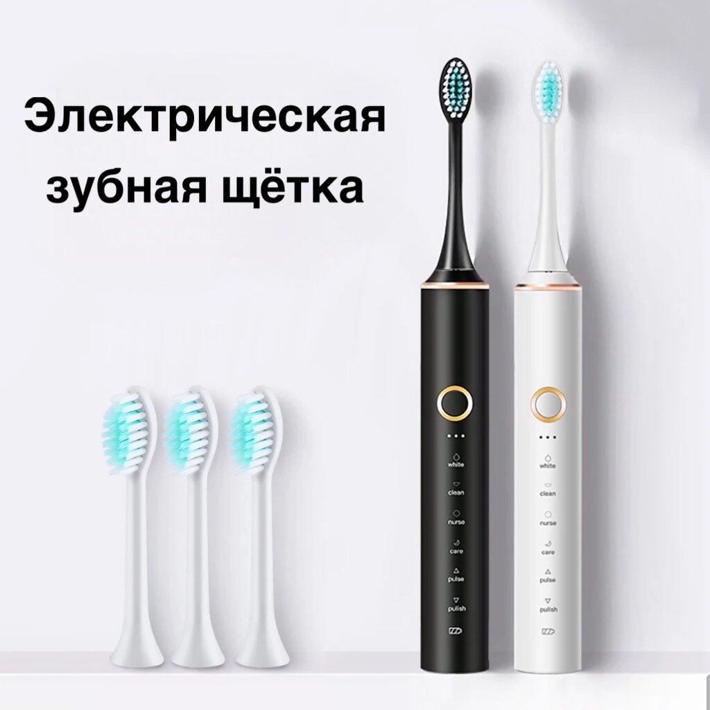 Купить Электрическая зубная щетка SOFA_DI для чистки зубов и полости рта, цвет чёрная, 6 режимов, с 4-мя сменными насадками