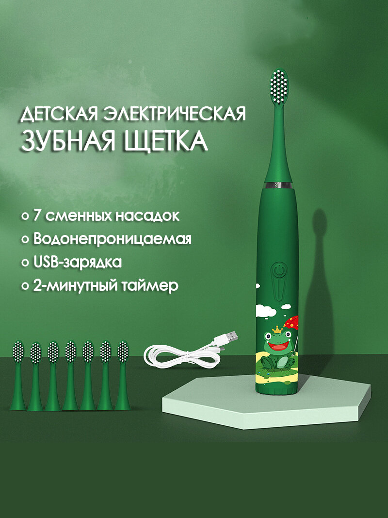 Электрическая ультразвуковая зубная щетка для детей детская, Лягушка интересное: