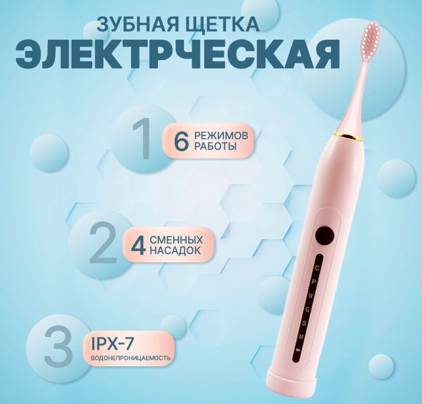 Электрическая зубная щетка SOFA_DI X7 с 4-мя насадками, цвет розовый интересное: