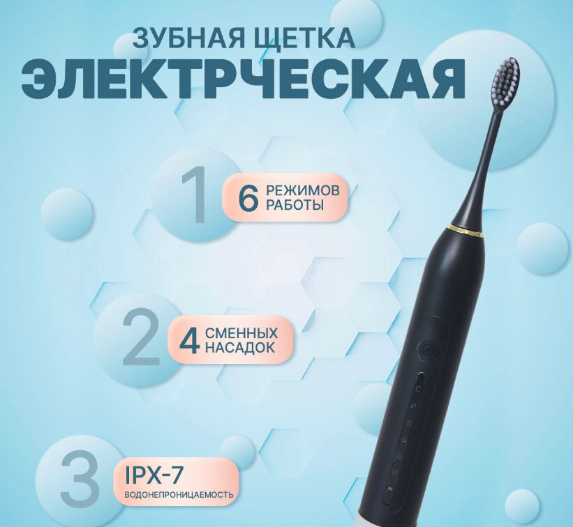 Электрическая зубная щетка SOFA_DI X7 с 4-мя насадками, цвет чёрный интересное: