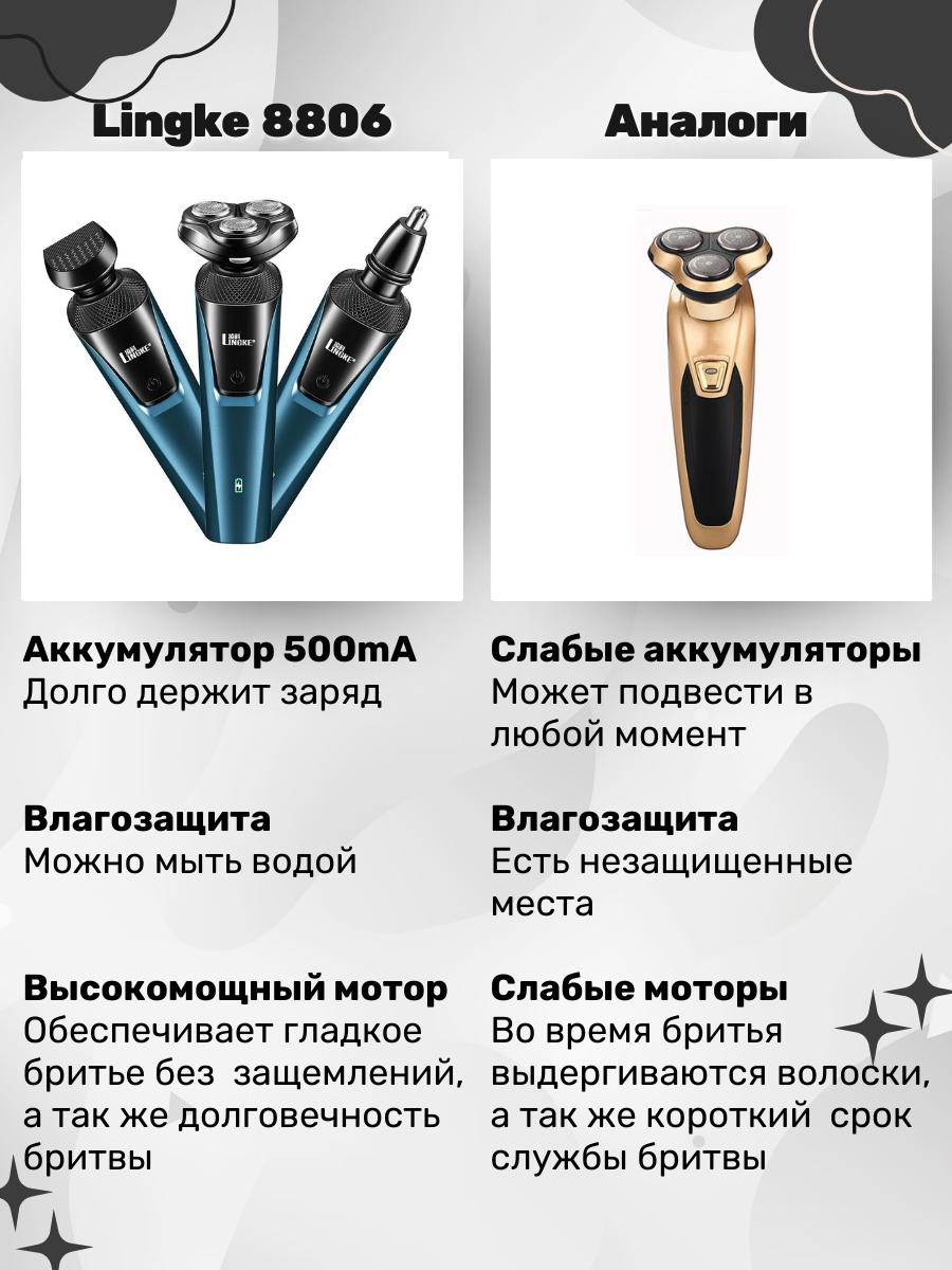 Электробритва для лица аккумуляторная с насадками 3 в 1 интересное:
