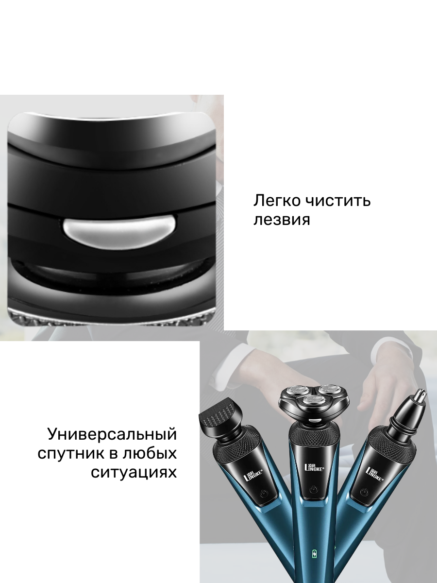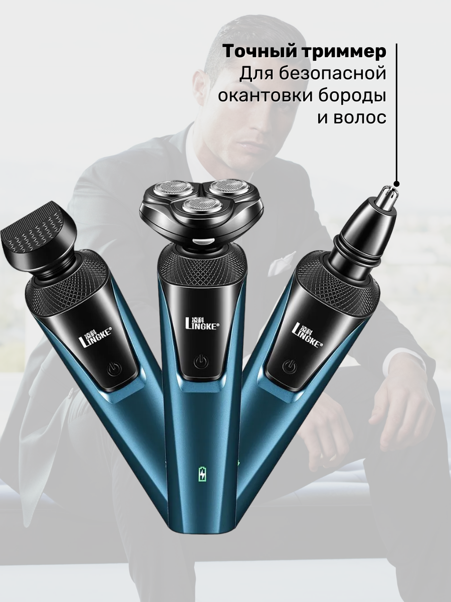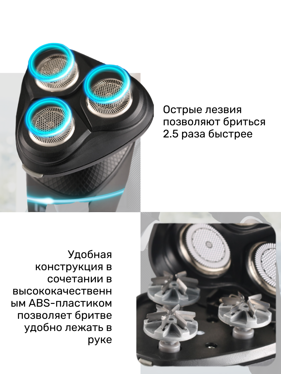 | Дополнительная информация | Электробритва; Плавующая 4D головка; Триммер для ушей и носа; Тример для висков, окантовки и бороды |