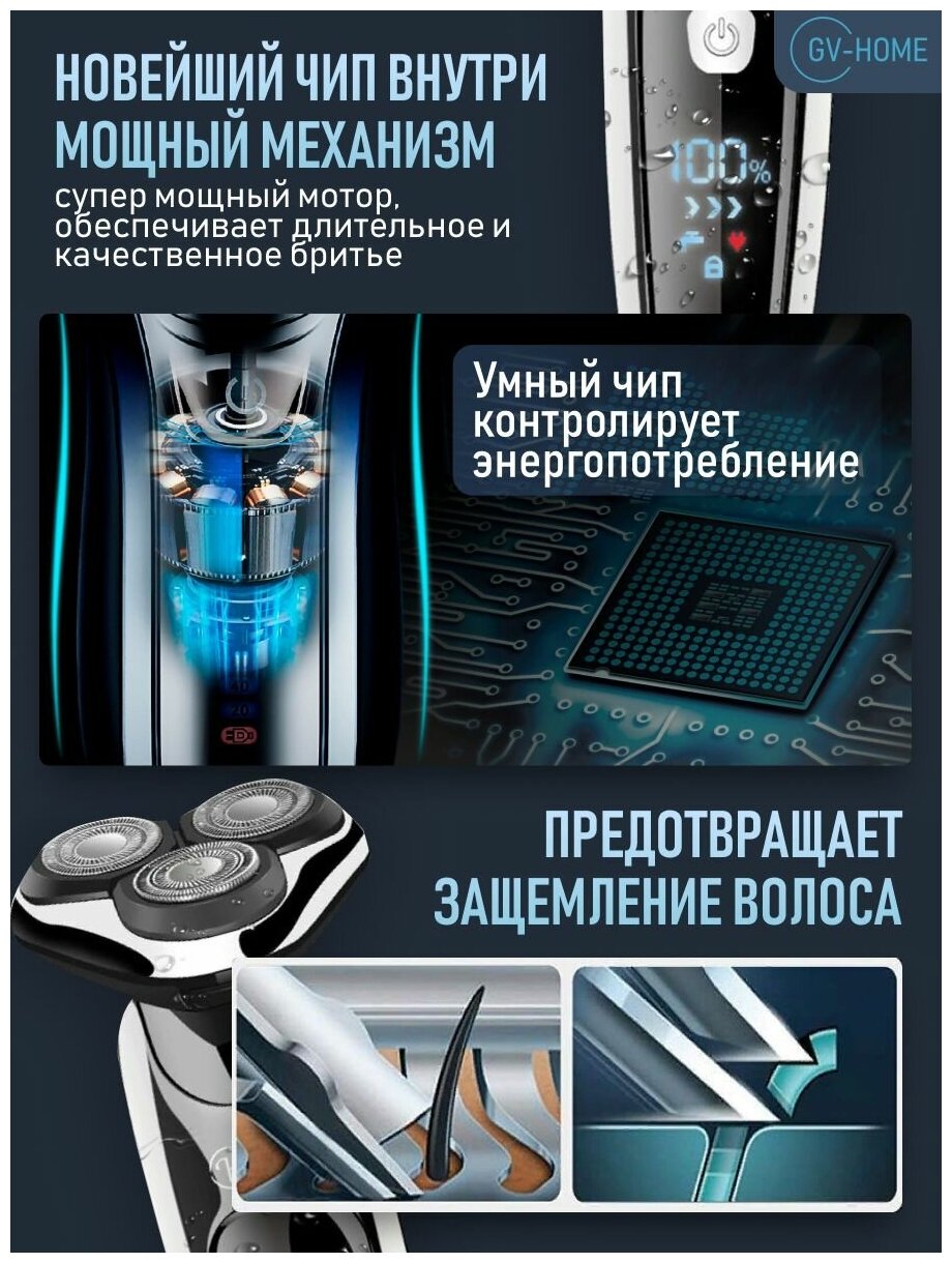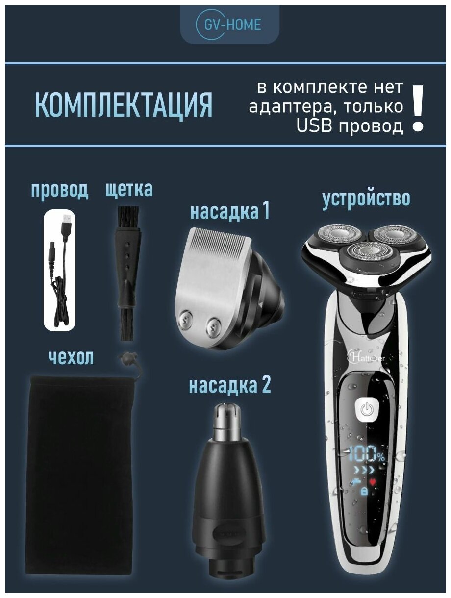 Электробритва мужская GV-HOME Hatteker 9598, водонепроницаемая, сухое и влажное бритье интересное: