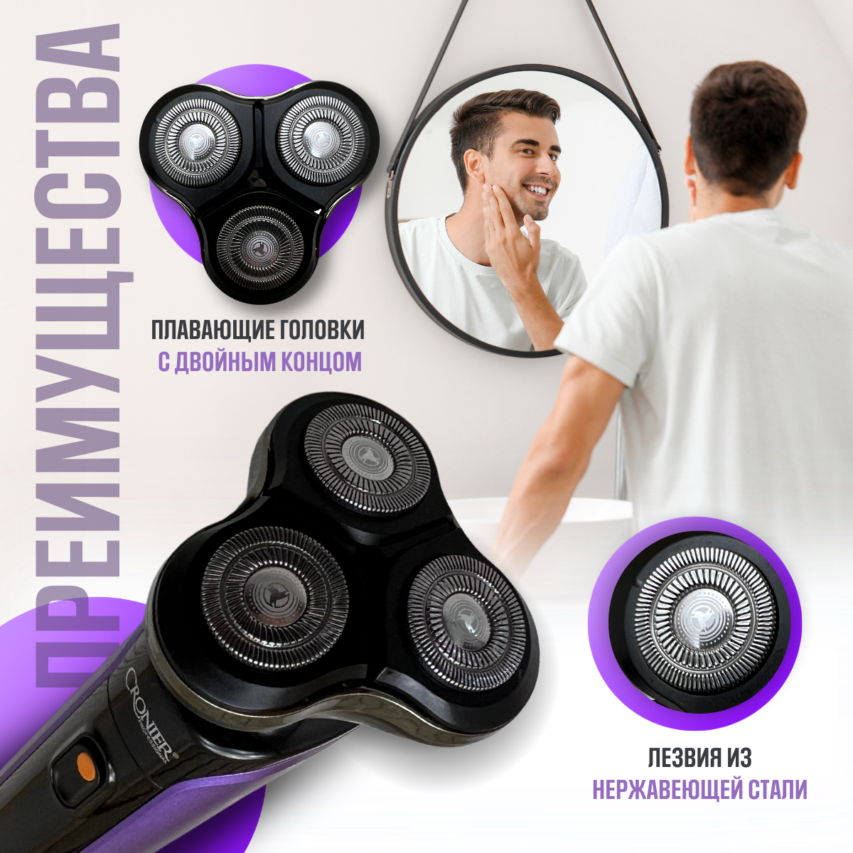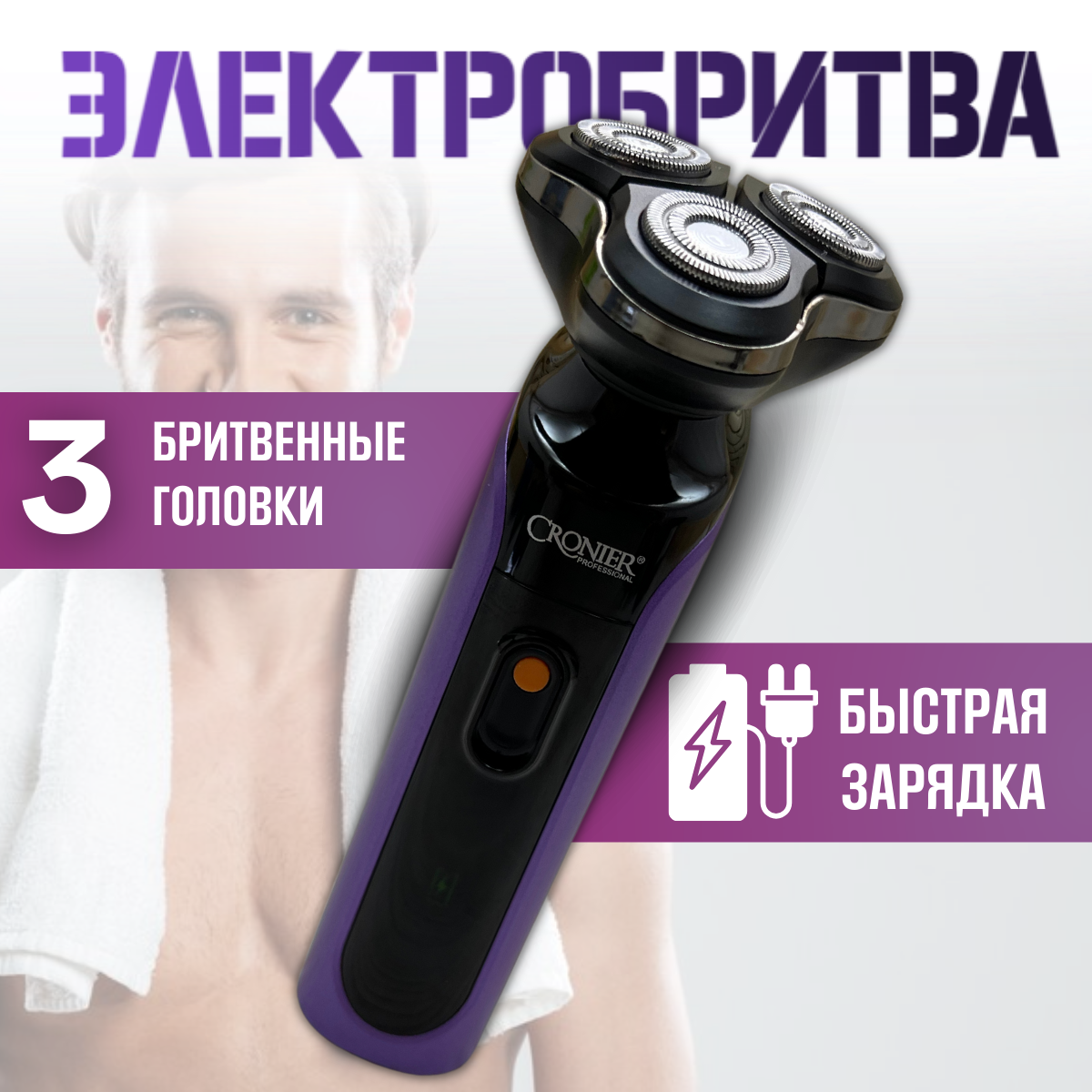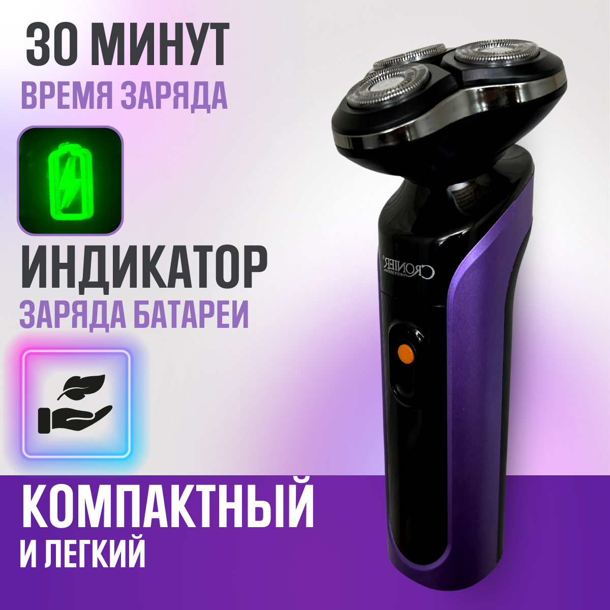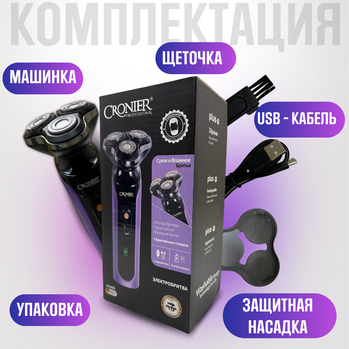 Беспроводная электробритва мужская Cronier 9095 с плавающими головками для сухого и влажного бритья интересное: