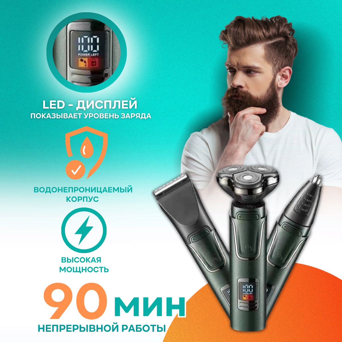 Купить Беспроводная электробритва для мужчин - плавающие головки, сухое и влажное бритье, зеленый