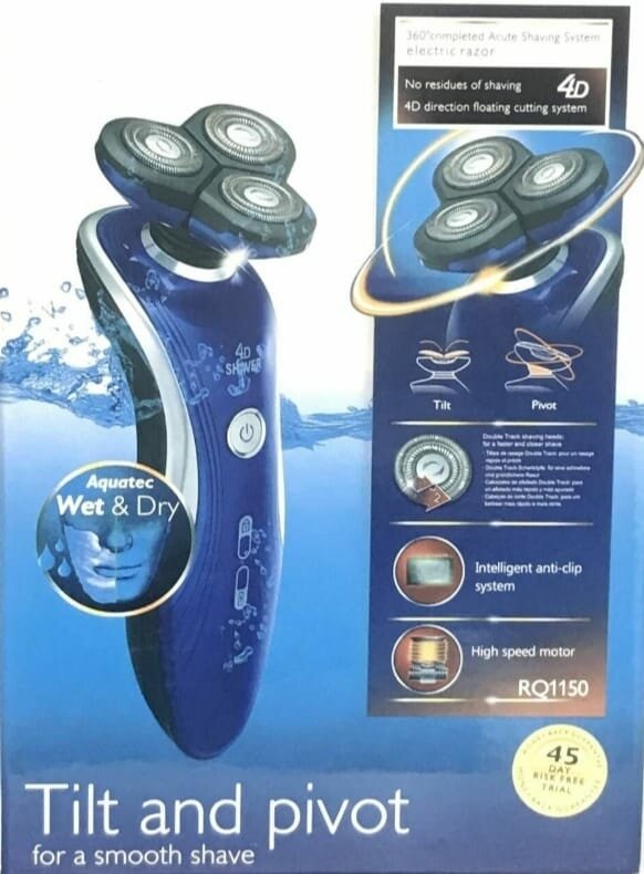 Купить Электробритва\бритва электрическая 4D RQ-1150, с плавающими ножами, синяя, 1 шт