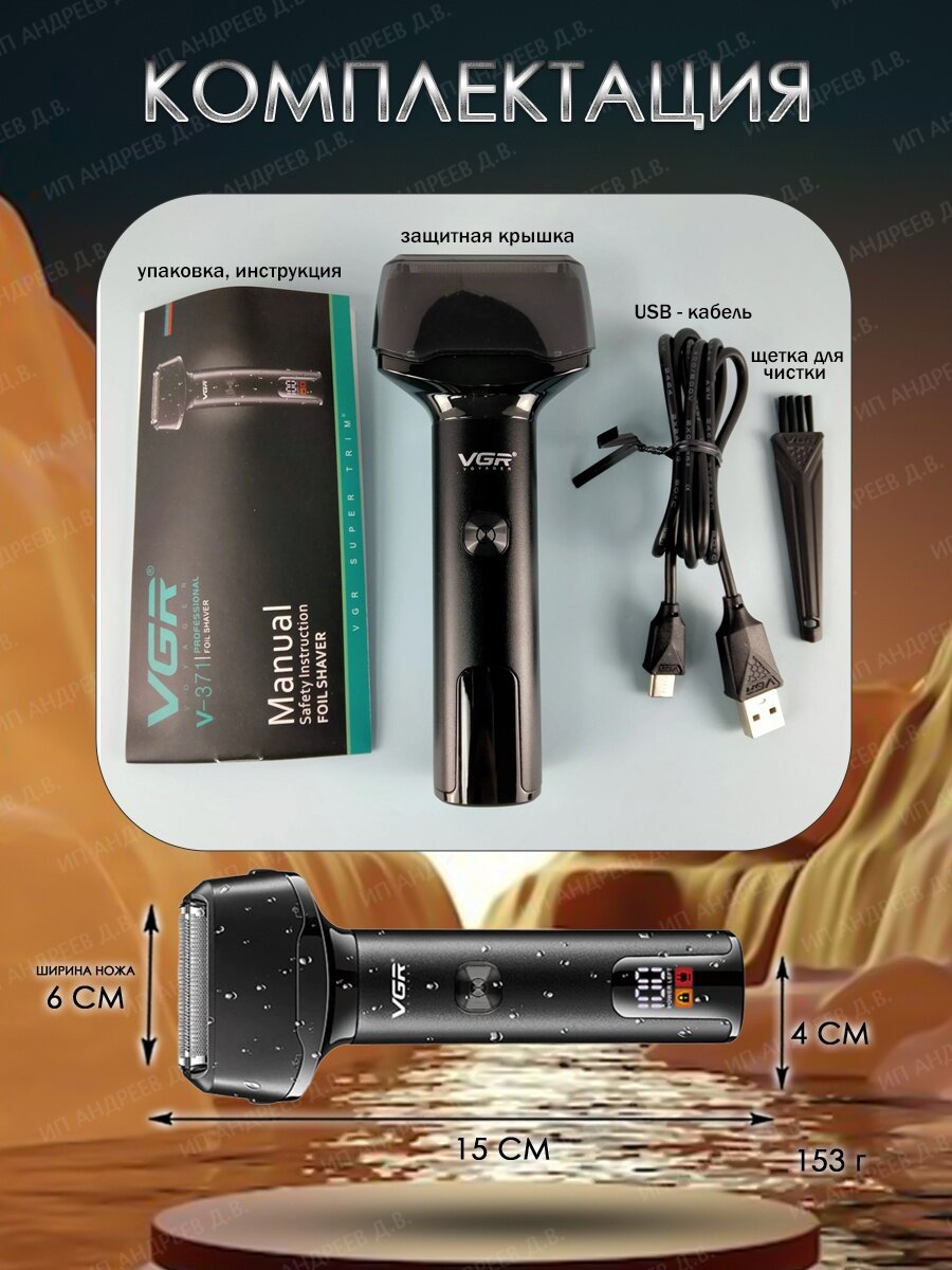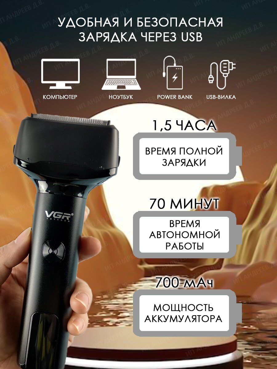 | Особенности | быстрая зарядка / дисплей / для чувствительной кожи / нескользящая вставка на рукоятке / питание от USB / триммер |