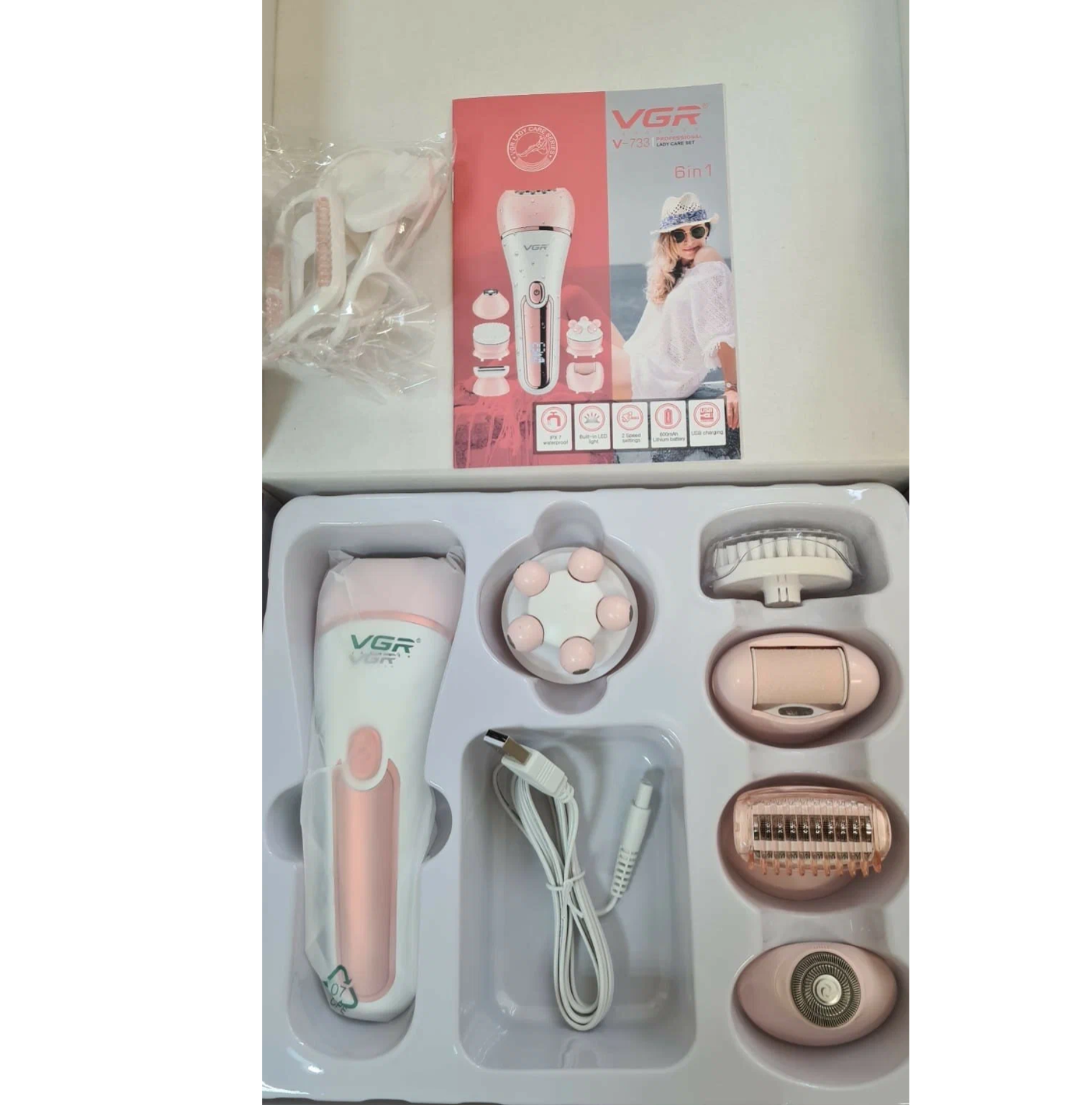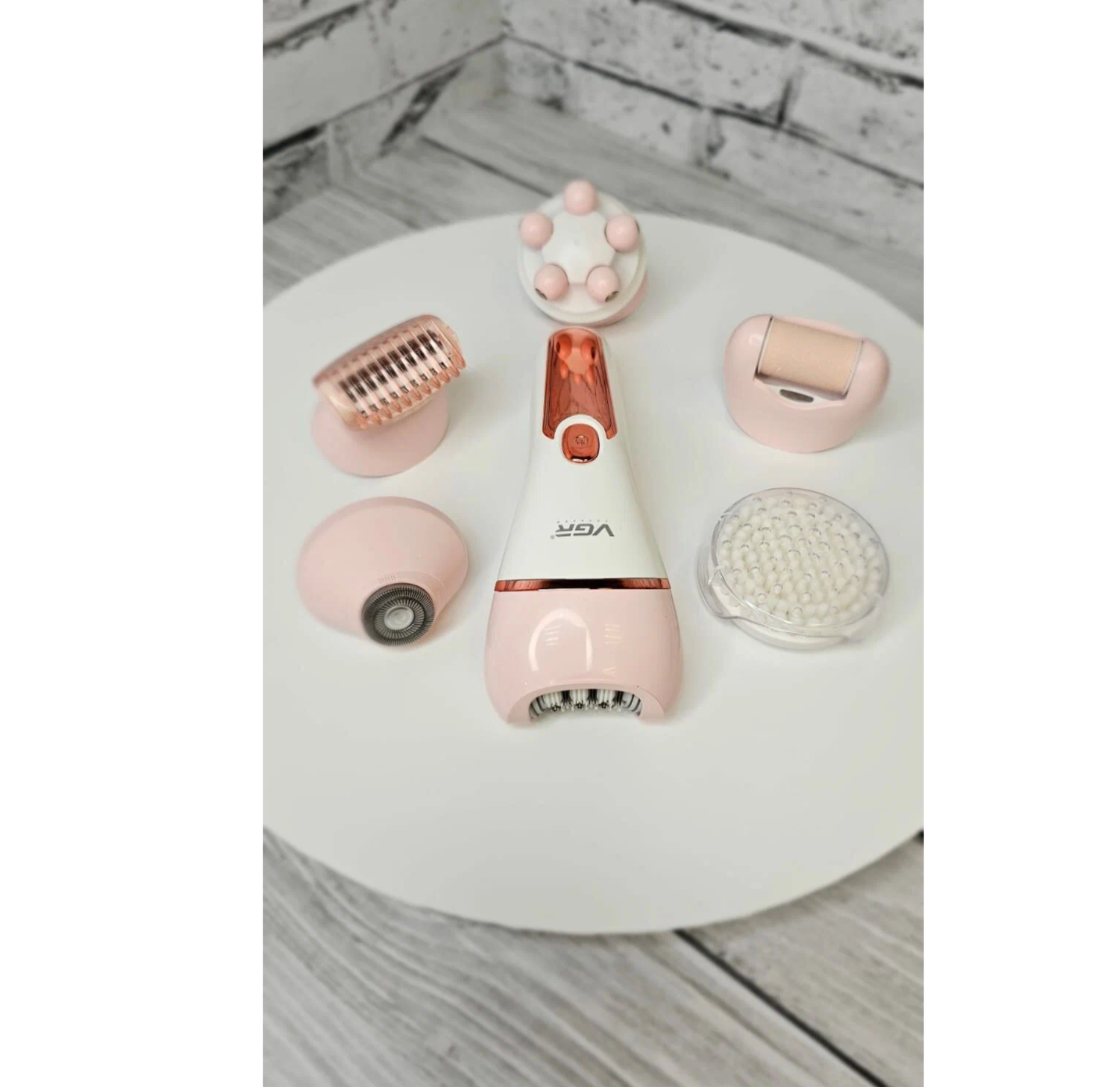 Купить Беспроводной женский эпилятор 6в1, электробритва, пилка для пяток, массажер для тела, щетка для пилинга, розовый