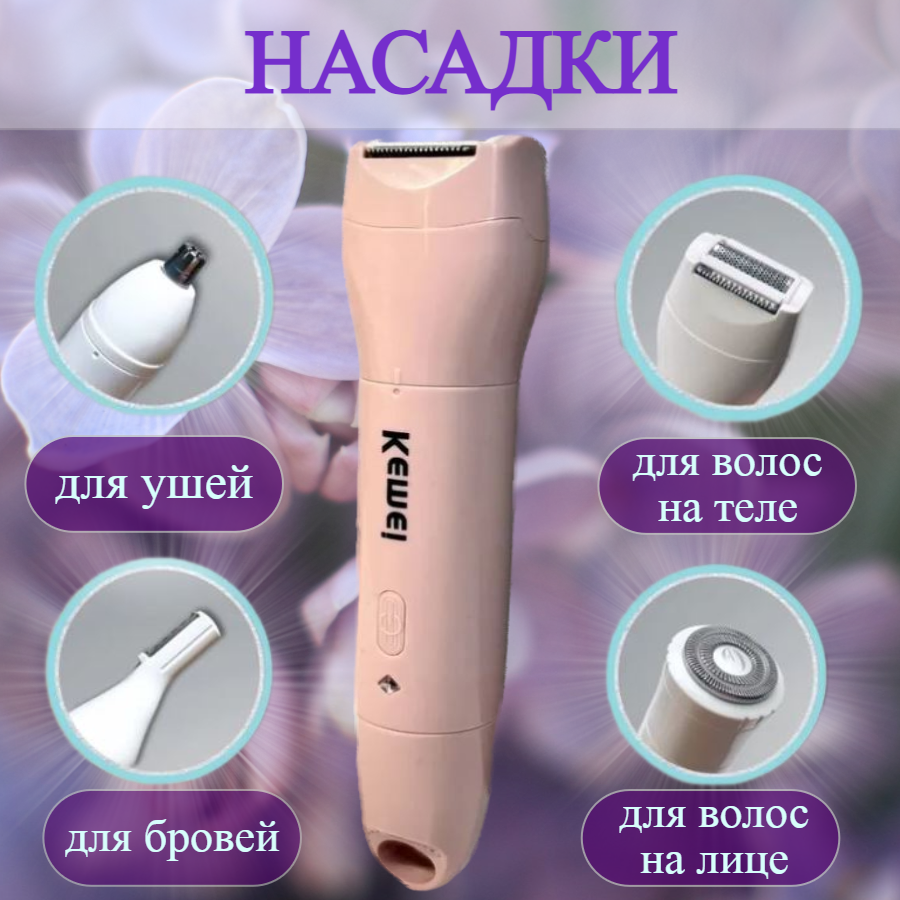 Электробритва женская беспроводная водонепроницаемая 4в1 / набор для женщин / подарок / розовая интересное: