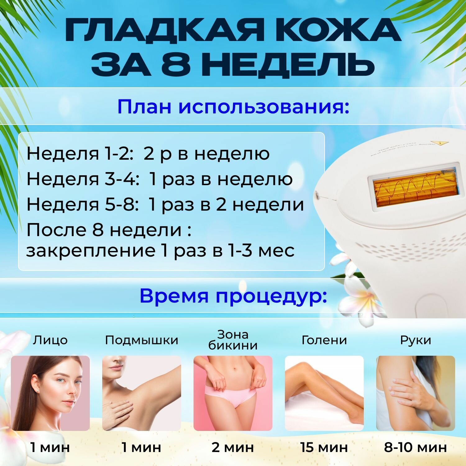 | Подробная комплектация | Фотоэпилятор, очки, блок питания, бритва |
