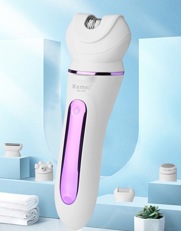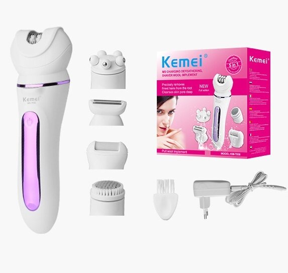 Эпилятор женский 5в1: электробритва, пилка для пяток, массажер для тела, щетка для пилинга/kemei 07936