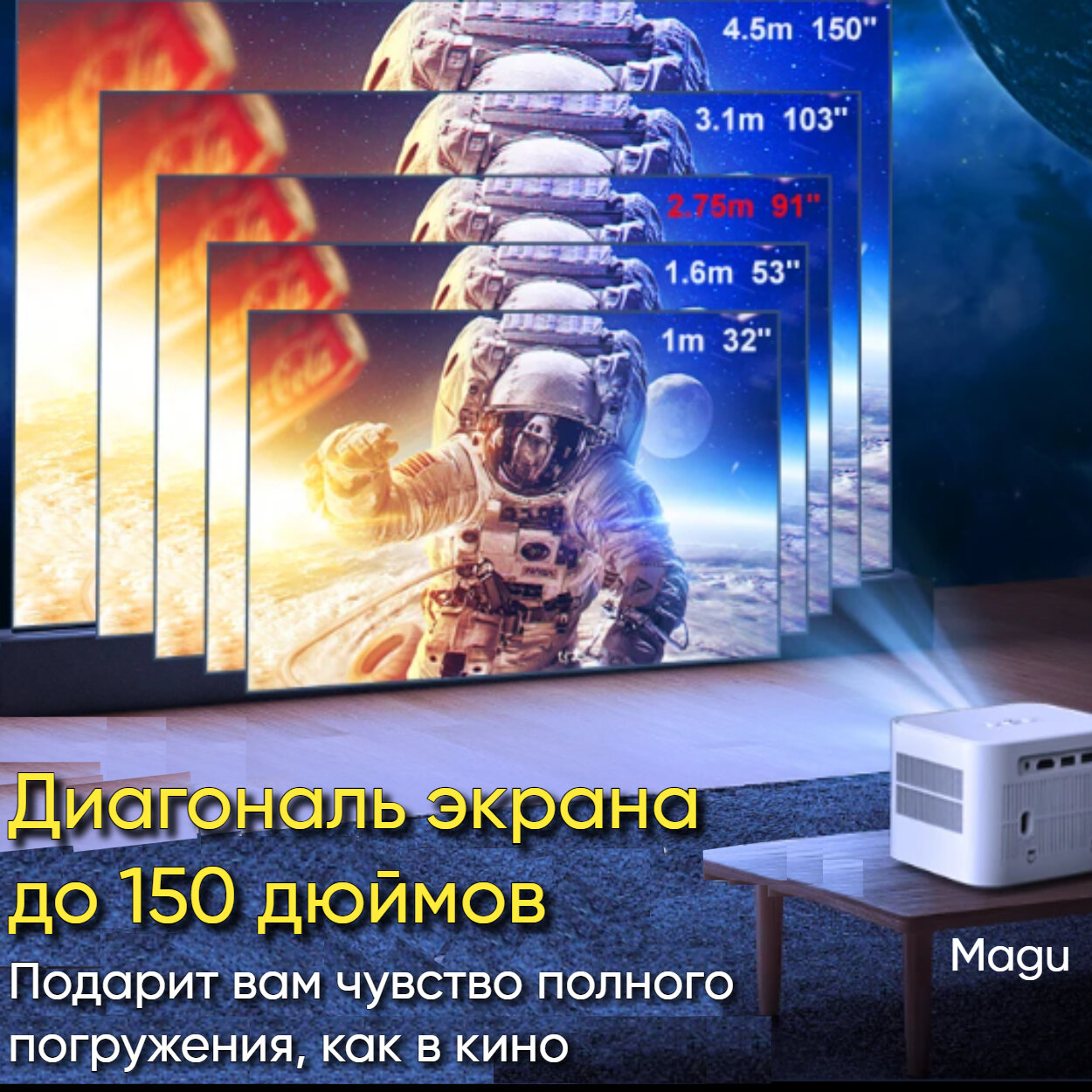 Magu/Мини проектор домашний кинотеатр Android Wi-Fi Full HD, Черно-серый интересное: