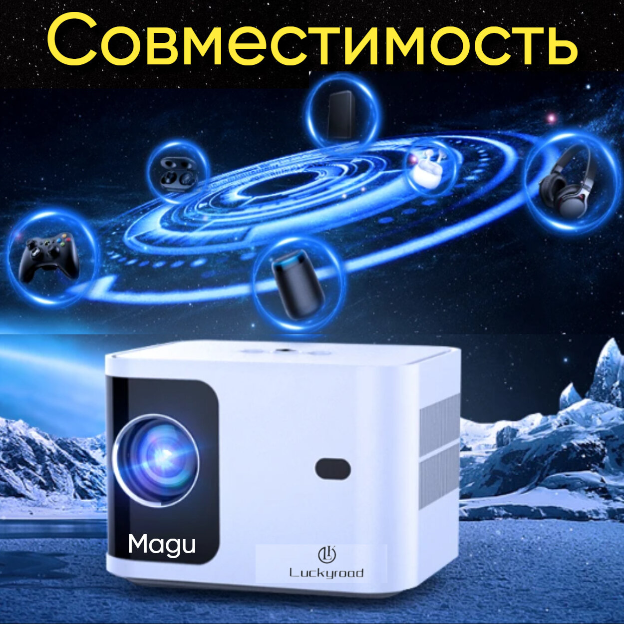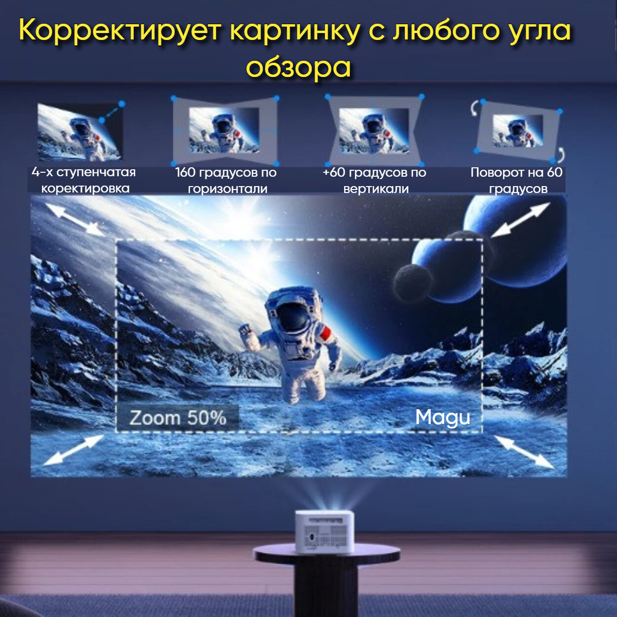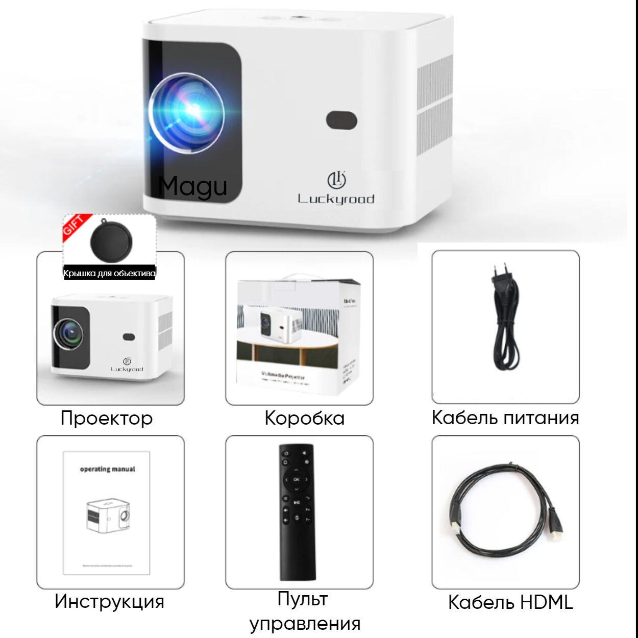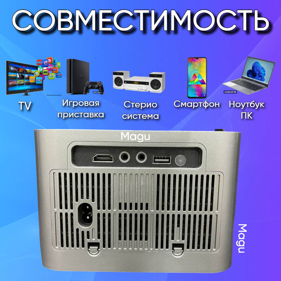 Описание Magu/Мини проектор домашний кинотеатр Android Wi-Fi Full HD, Черно-белый