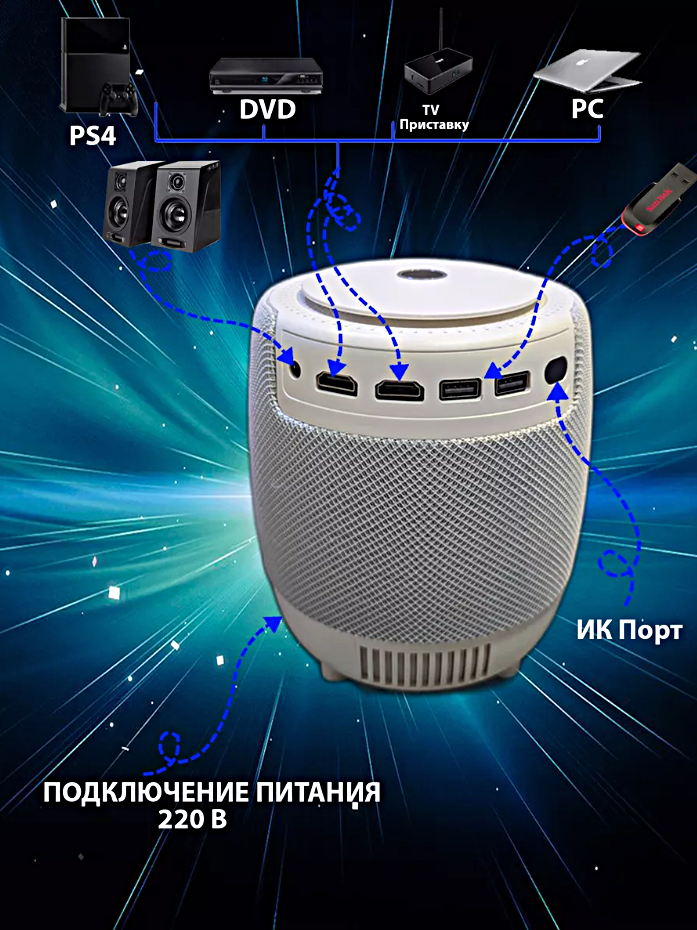Проектор Luckyroad M20 Full HD Android TV, Портативный проектор 5G, HDMI, Пульт ДУ, Проектор Wi-Fi 1080p для дома, дачи, офиса, Белый интересное:
