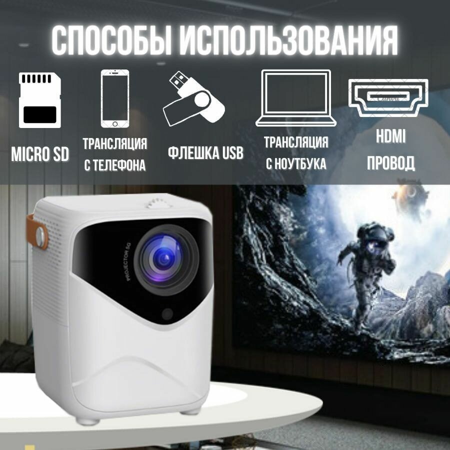 Портативный проектор с HDMI для домашнего кинотеатра, Wi-Fi, Bluetooth, 5G сеть, черный