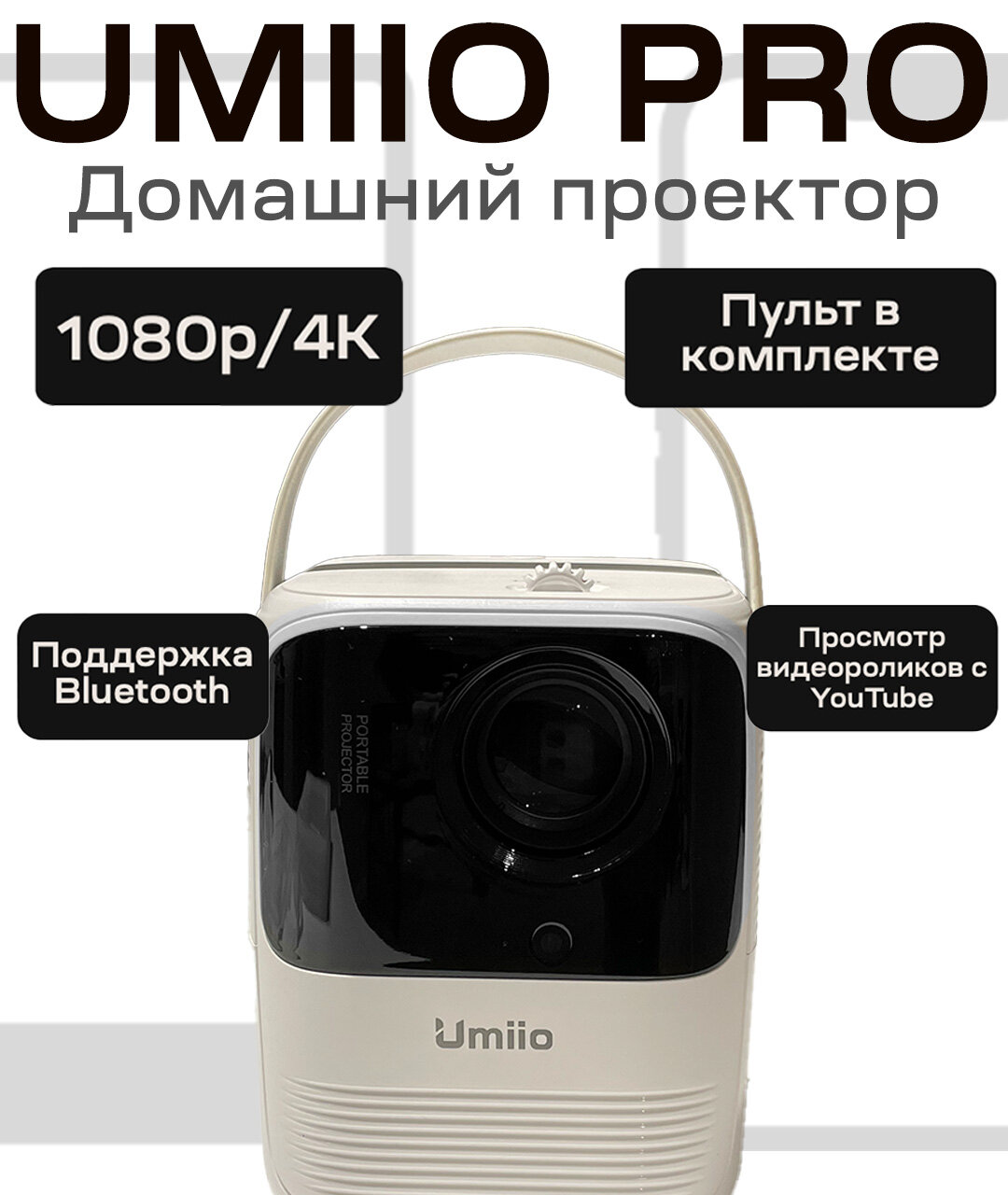 Купить Портативный проектор Umiio А008 Pro для фильмов, YouTube. Белый